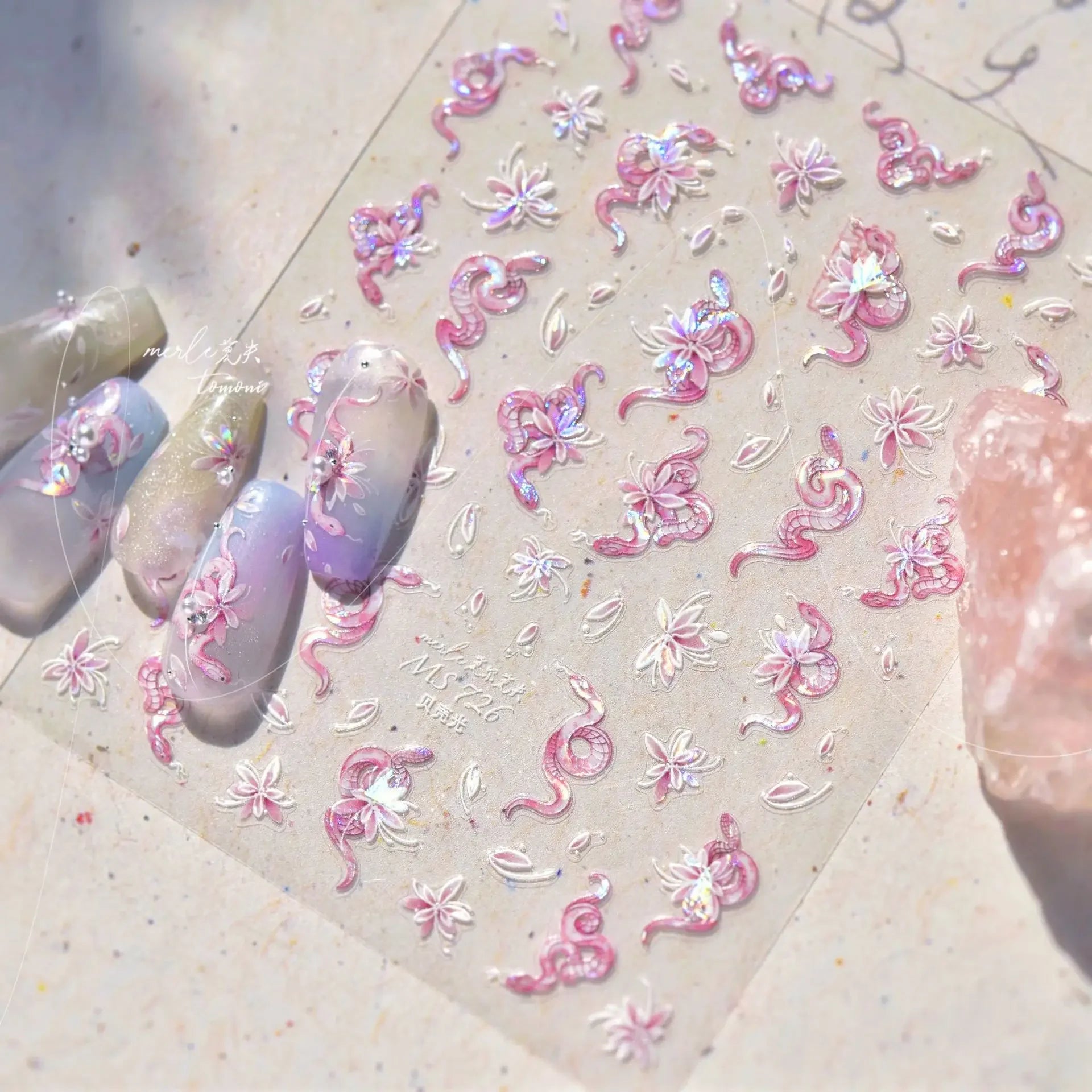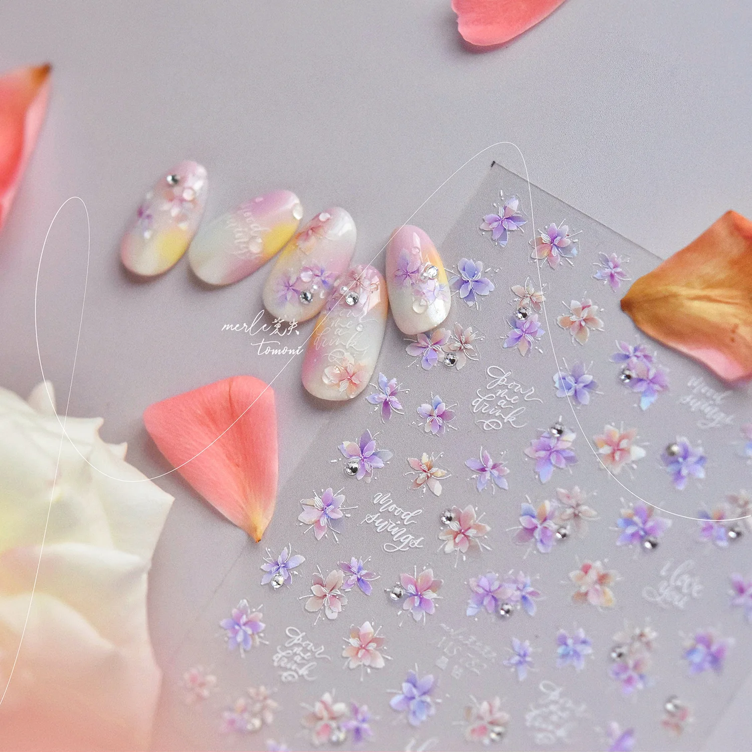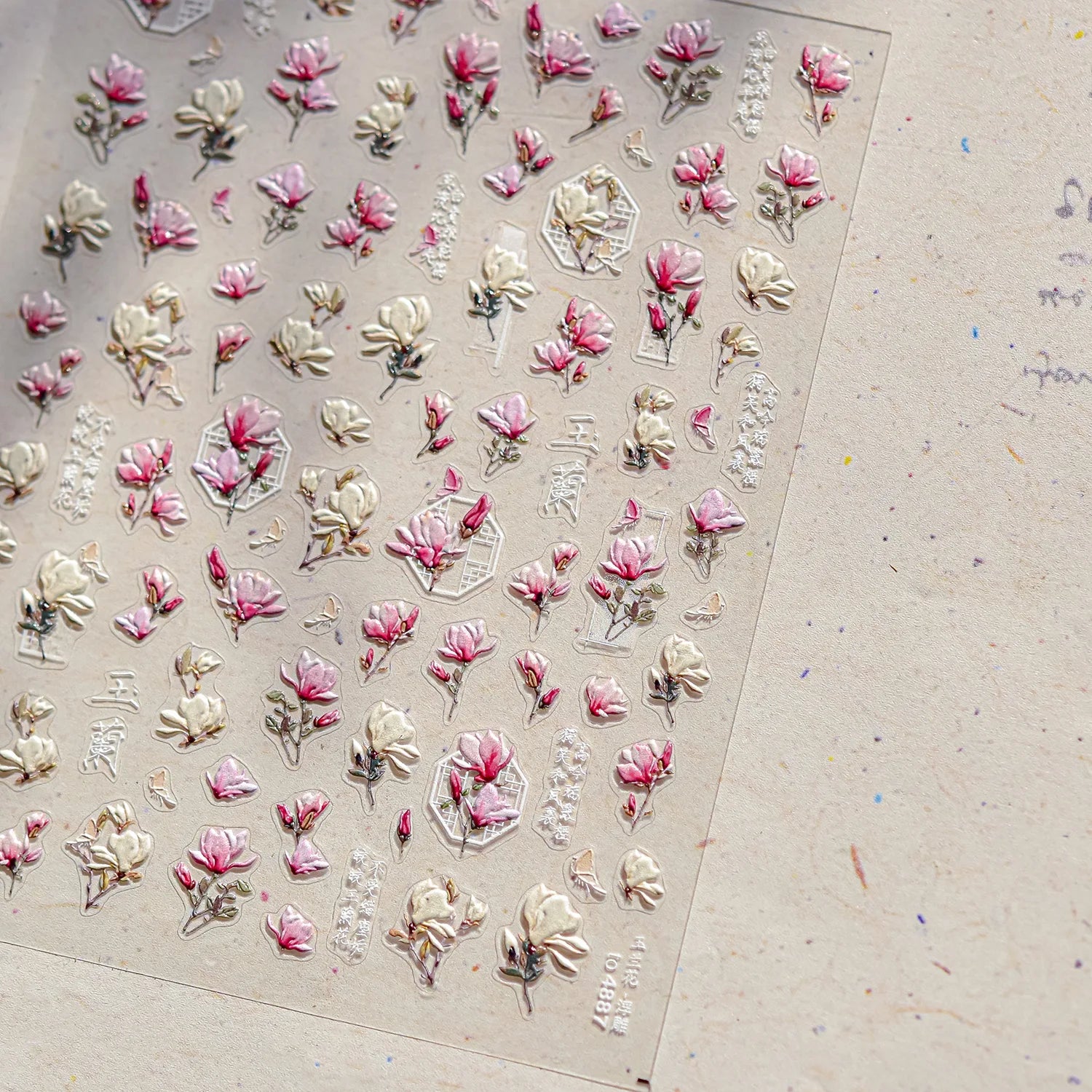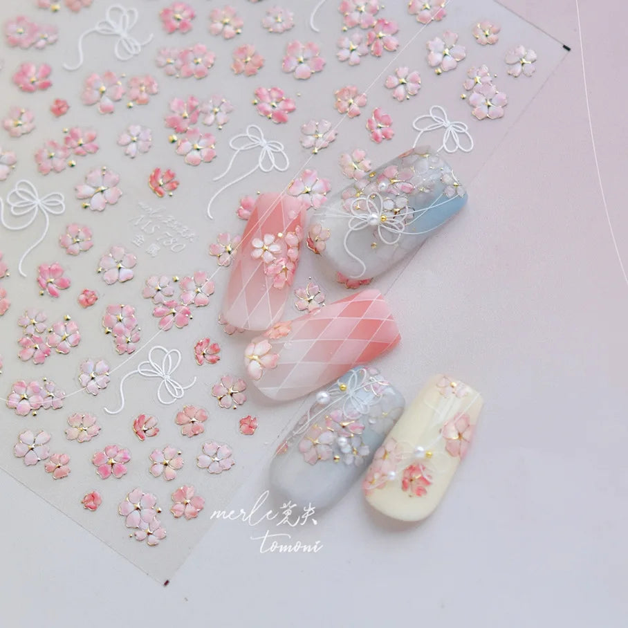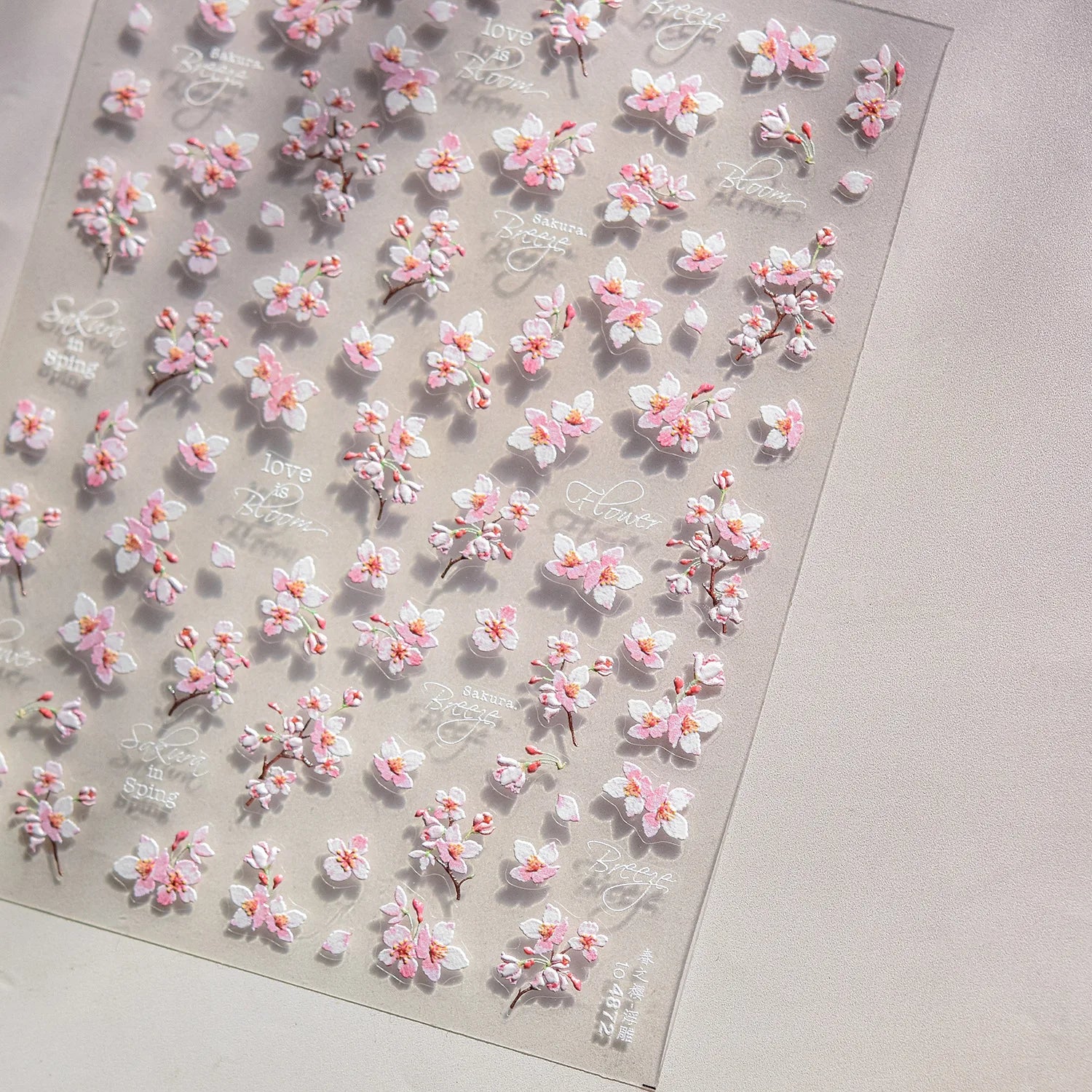 Lunivop Blossoming Sakura Spring Petal Cherry Flowers Living Peach Branch 5D Nail Art Sticker Soft Relief Adhesive Chic Manicure Decals
