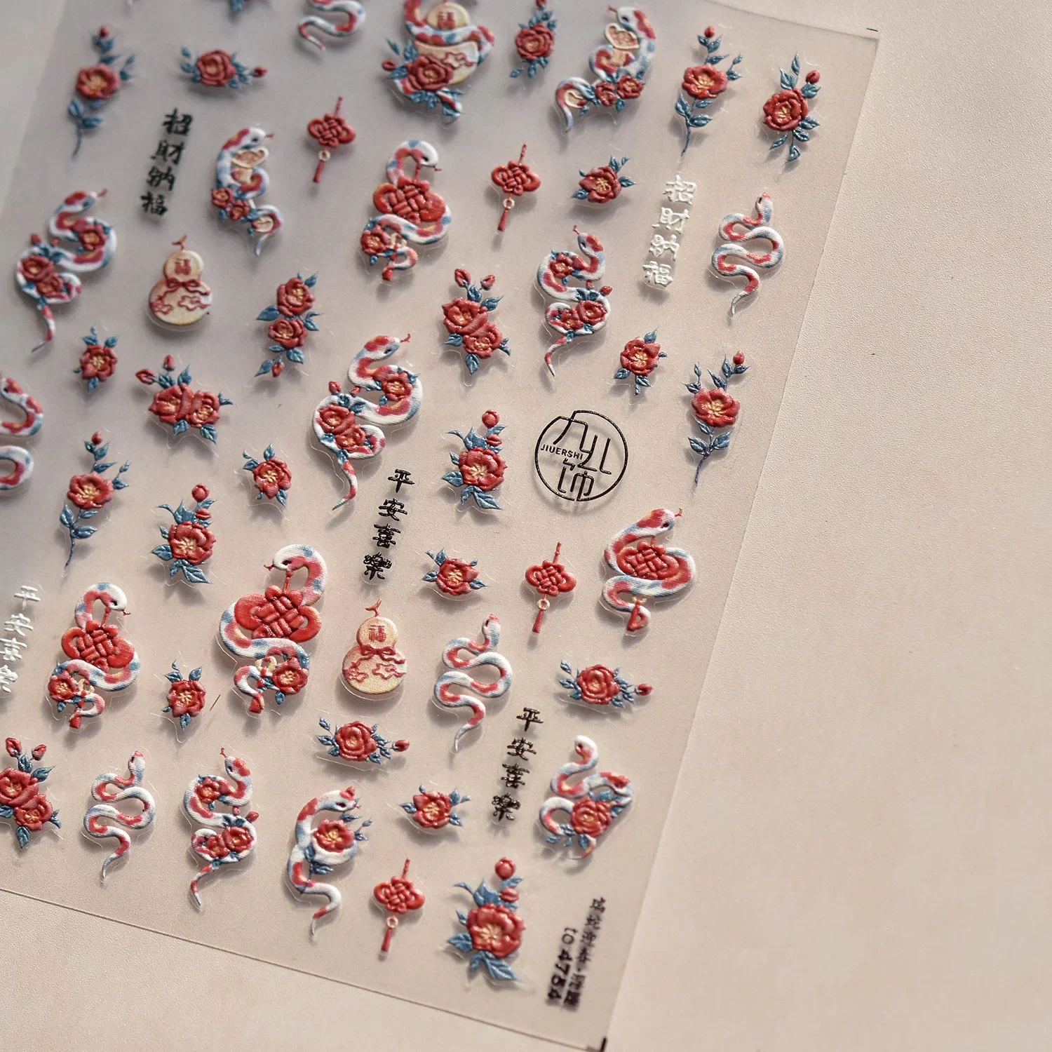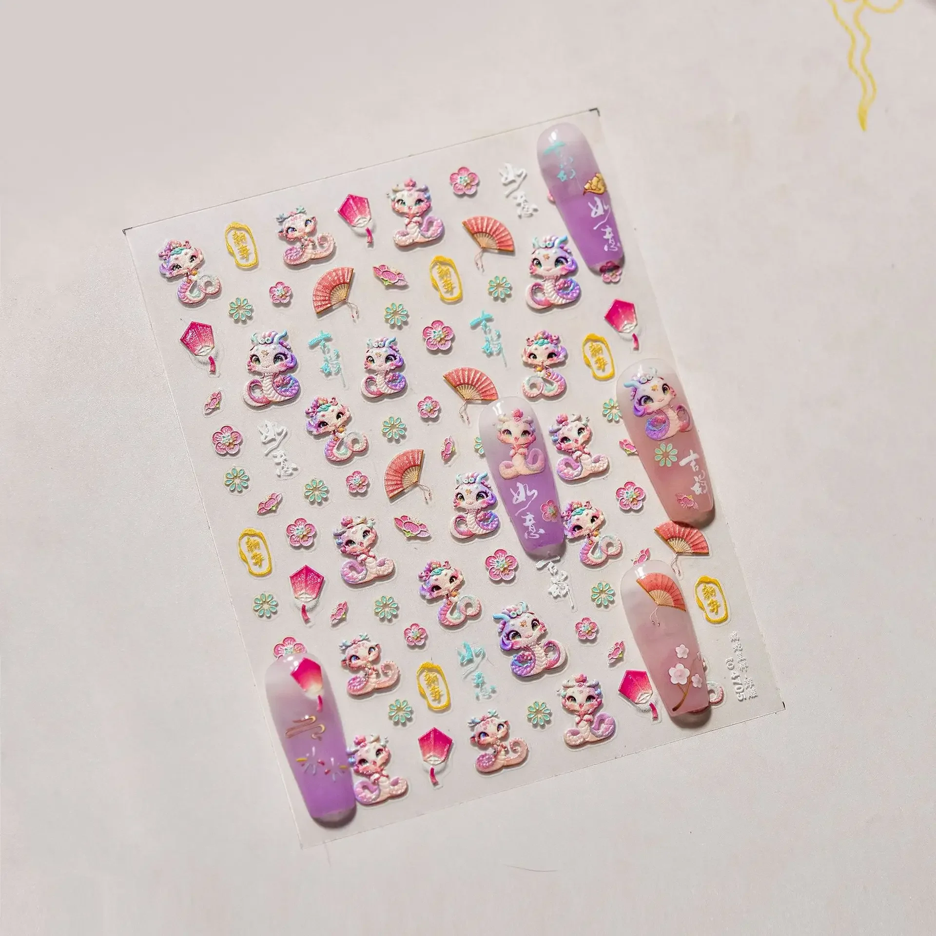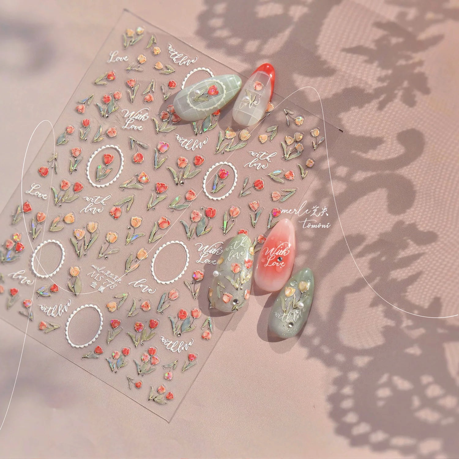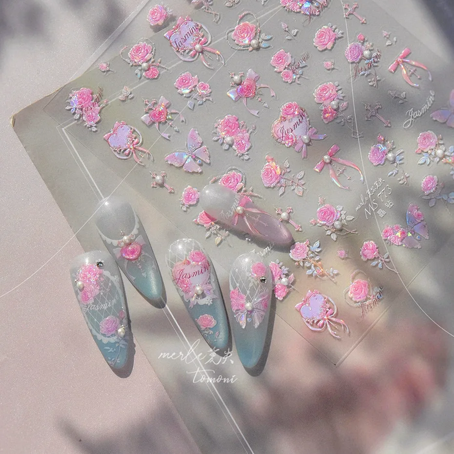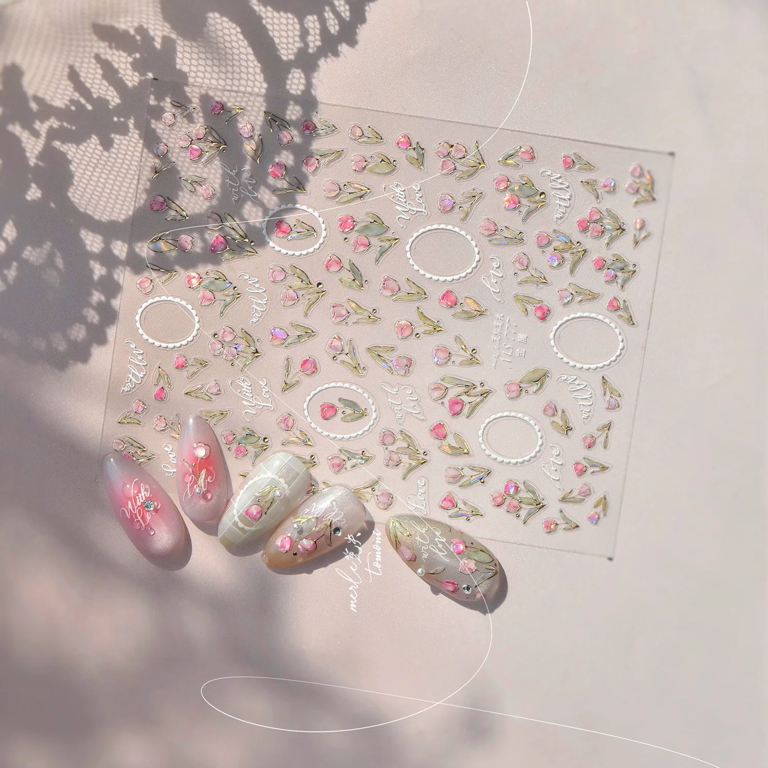 Lunivop Blossoming Sakura Spring Petal Cherry Flowers Living Peach Branch 5D Nail Art Sticker Soft Relief Adhesive Chic Manicure Decals
