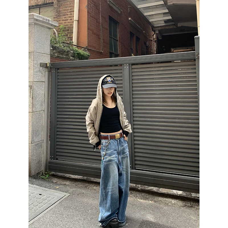 Lunivop Blue Baggy Straight Leg Pants Women Jeans Vintage Y2K 2000s High Waist Fit Washed Denim Pants Hotgirls Streetwear Grunge Clothes