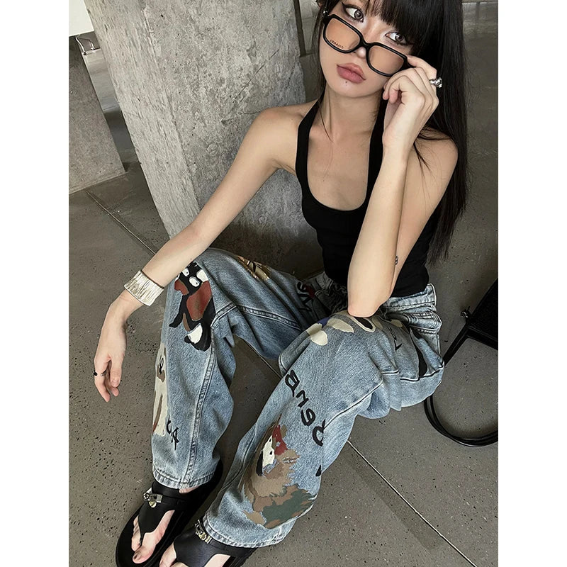 Lunivop Blue Women Jeans High Waist Fashion American Graffiti Y2K Streetwear Chic NEW Wide Leg Jean Female Trouser Baggy Denim Pants