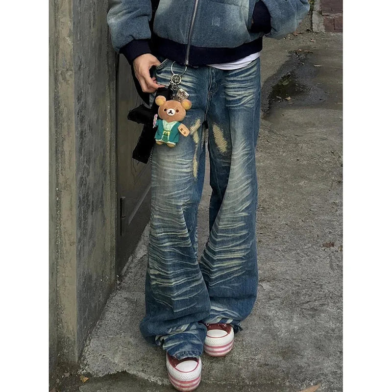 Lunivop Blue Womens Jeans High Waist Vintage Design Hip Hop Straight Baggy Denim Pants Street Y2K American Style Wide Leg Denim Trouser