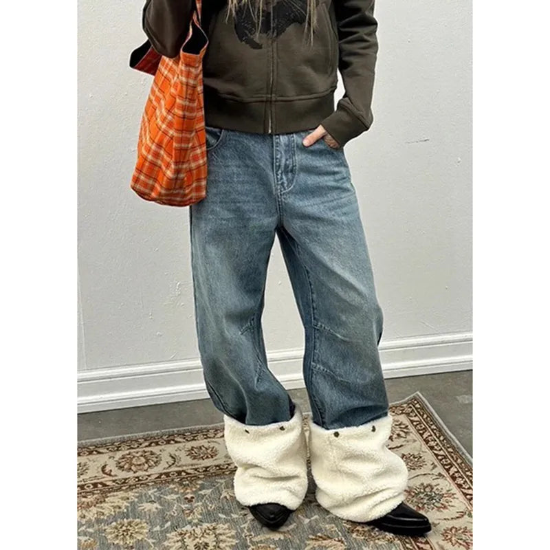 Lunivop Blue Womens Jeans High Waist Vintage Straight Baggy Denim Pants Streetwear American Style Fashion Casual Wide Leg Denim Trouser