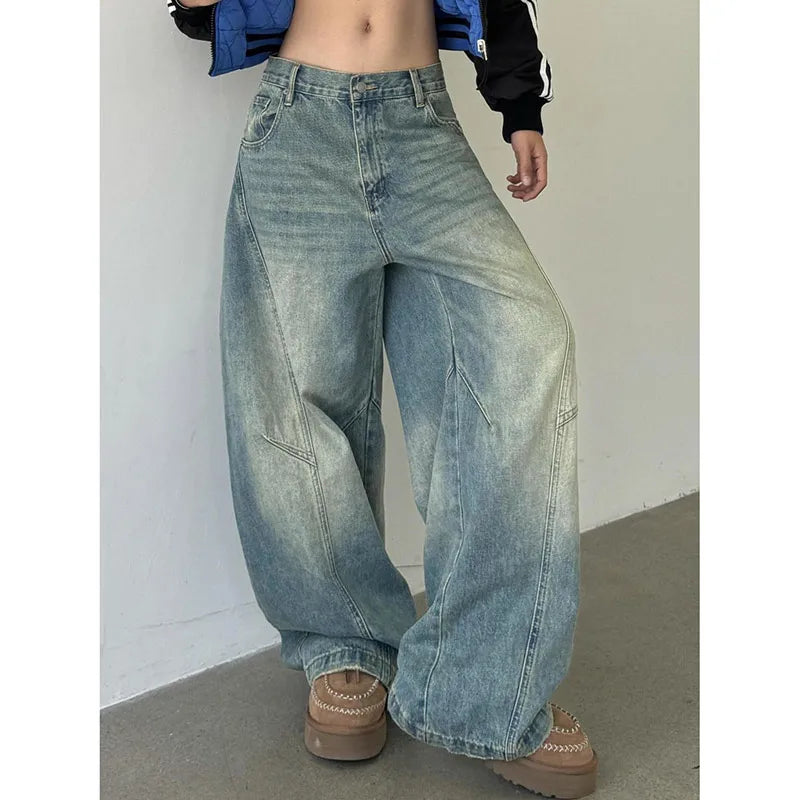 Lunivop Blue Womens Jeans High Waist Vintage Straight Baggy Denim Pants Streetwear American Style Fashion Casual Wide Leg Denim Trouser