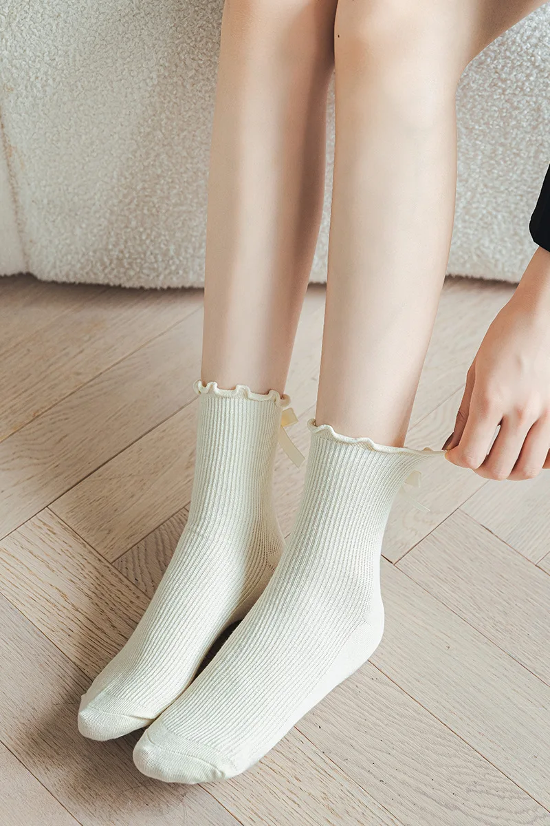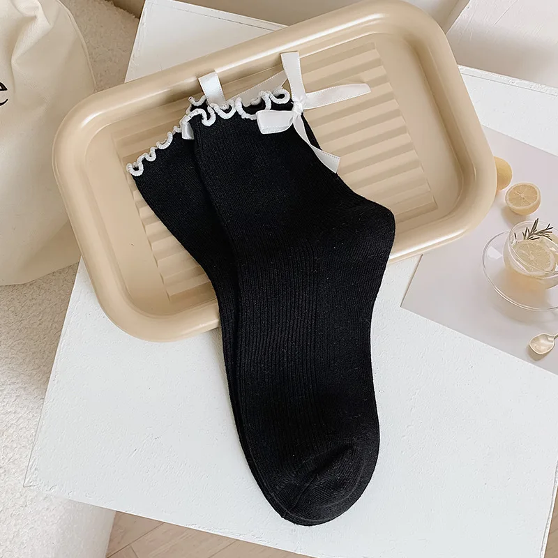 Lunivop Bow Lace Socks Women's Middle Tube Socks Lolita Style Pile Socks Fashion Simple Solid Color Autumn Socks Women Socks JK Socks