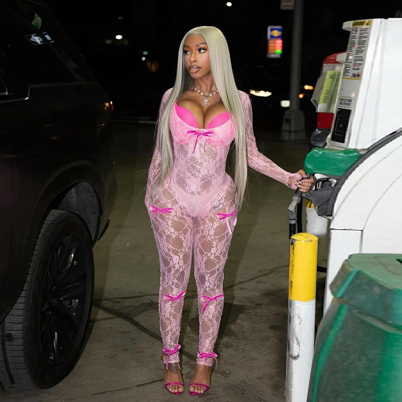 Lunivop Bows Lace Mesh See Through Long Jumpsuit One Pieces Sexy Club Outfits For Women New Fashion Rompers Y2K Clothing 2024