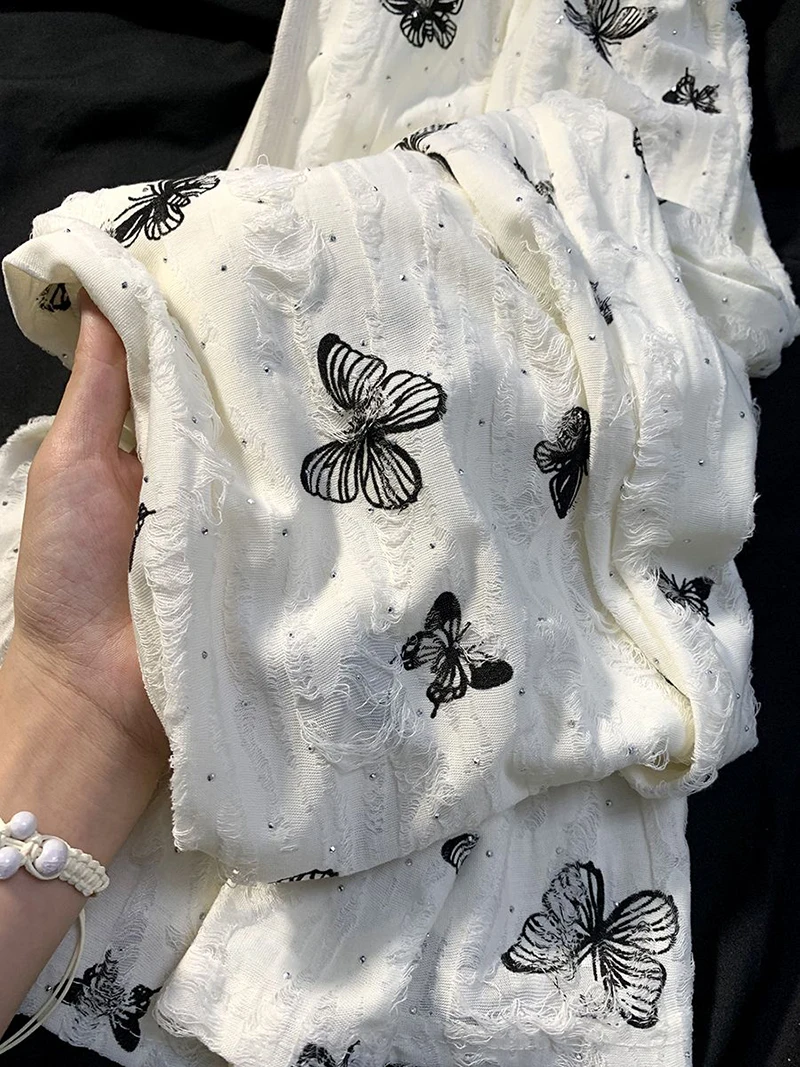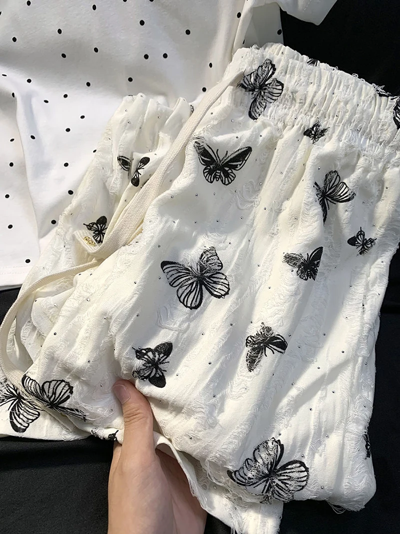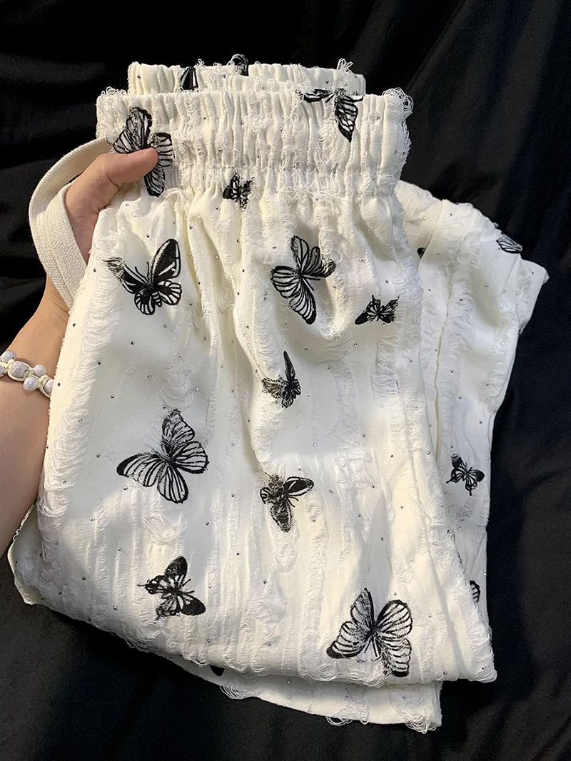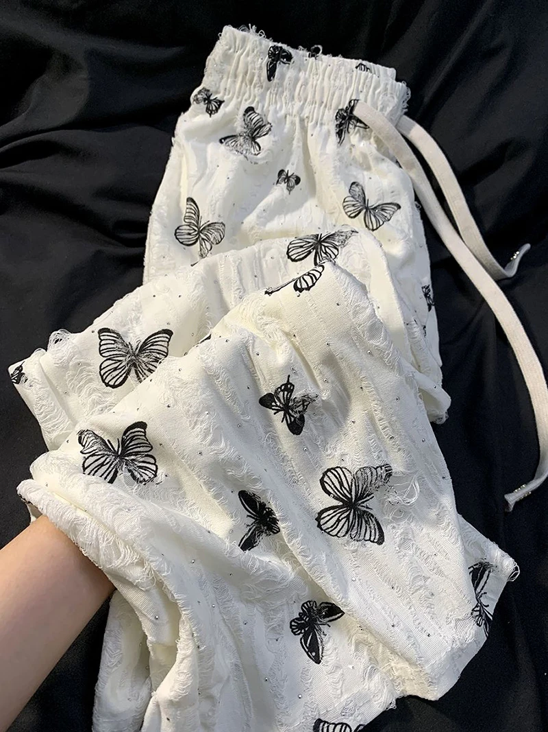 Lunivop Bufferfly Diamond Casual Pants Women Vintage Hole High Waist Wide Leg Trousers Korean Loose Fashion Design Lady Sweet Pants