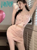 Lunivop Butterfly Vintage Elegant Two Piece Set Women Lace Korean Sexy Mini Skirts Suit Female Chic Pink Vest + Designer Skirt