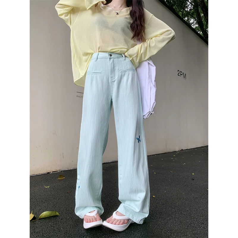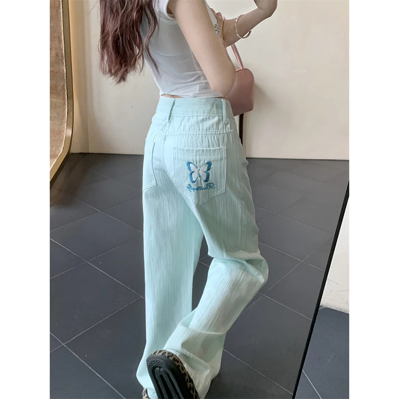 Lunivop Butterfly Women's Jeans High Waist Hip Hop Straight Denim Pants Y2k Streetwear Fashion Vintage Baggy Wide Leg Trousers 2024 New