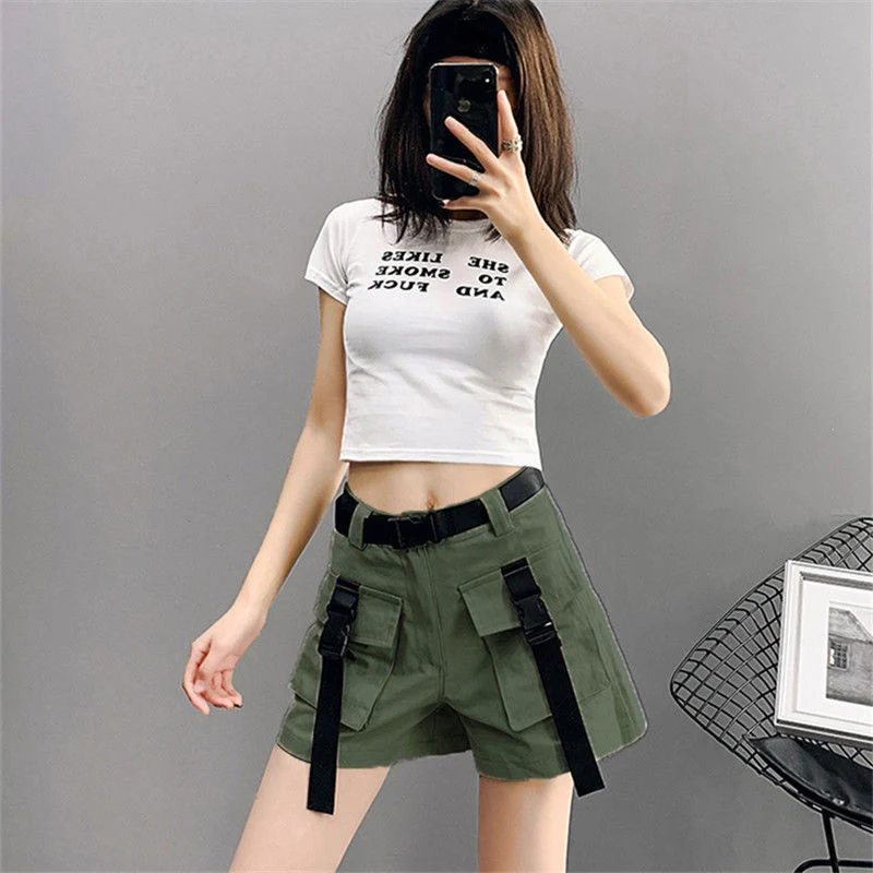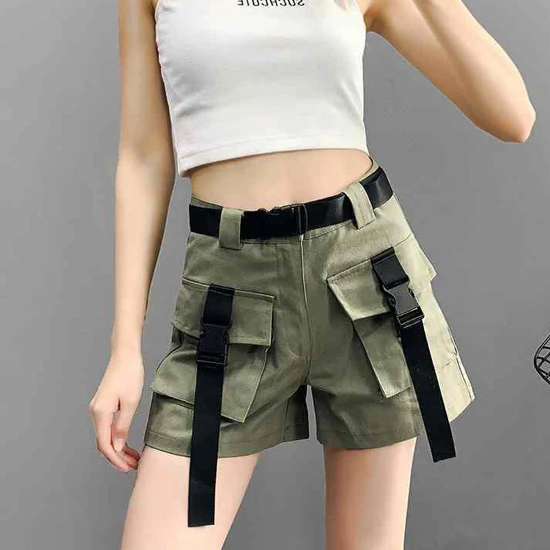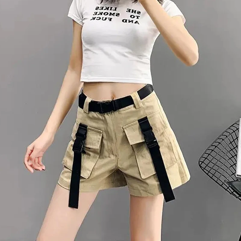 Lunivop Cargo Shorts Women Harajuku Streetwear High Waist Pockets Belt Wide Leg Shorts Korean Loose All Match Casual Short Pants