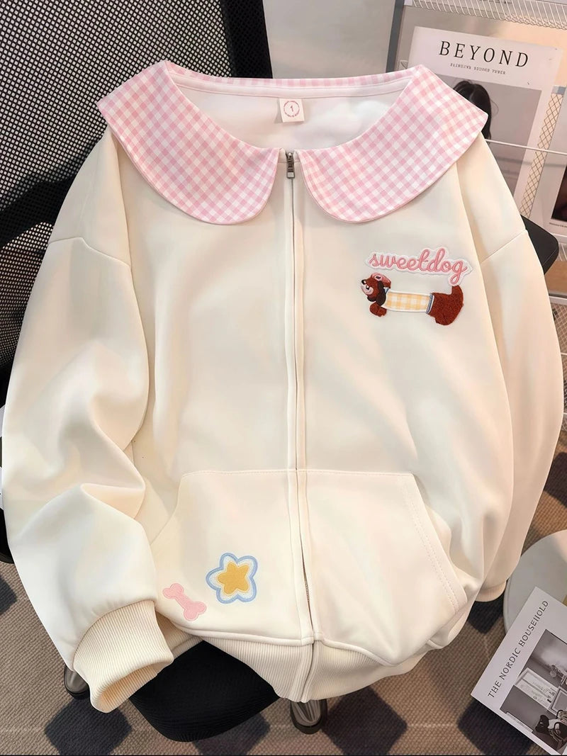Lunivop Cartoon Sweet Kawaii Hoodies Women Loose Cute Peter Pan Collar Sweatshirts Fall Preppy Style Long Sleeve New Embroidery Top