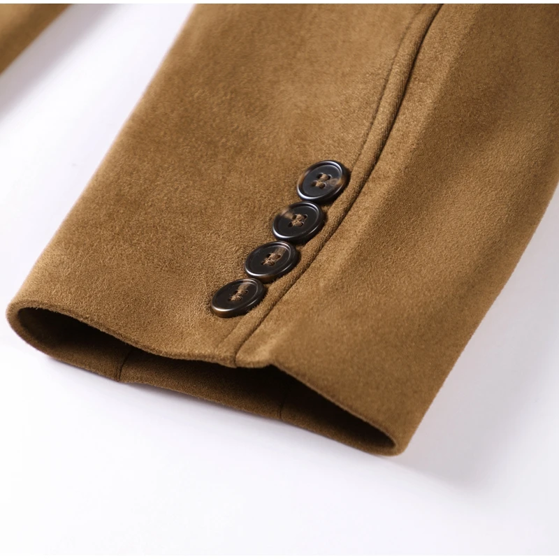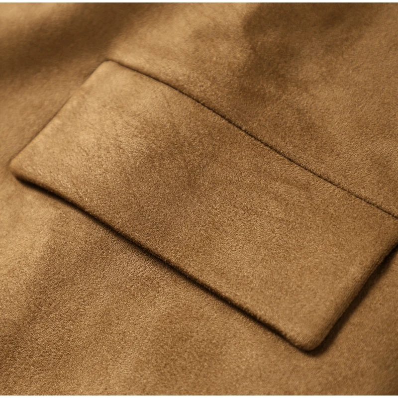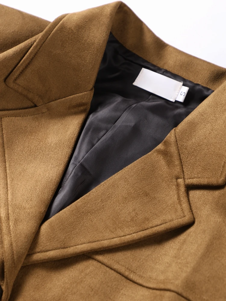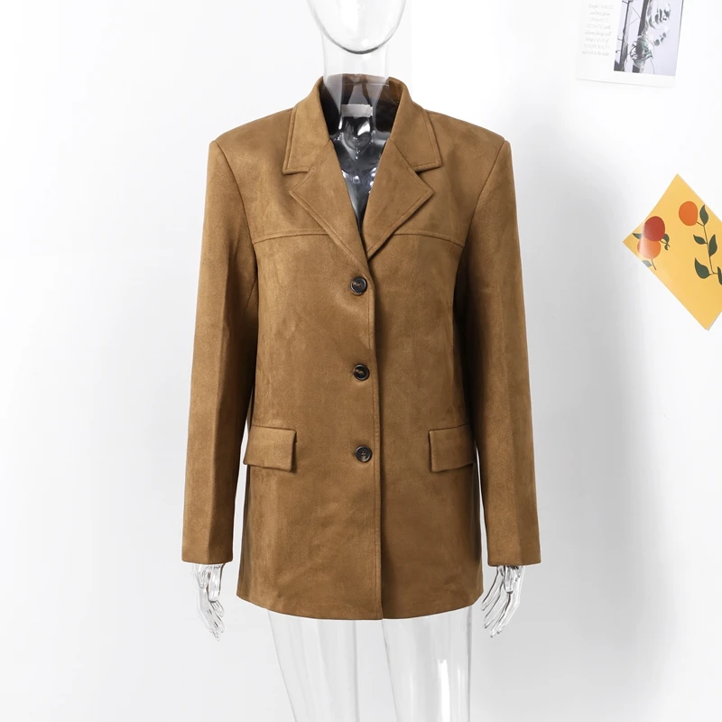 Lunivop Casual Brown Lapel Pocket Suede Leather Jacket Fashion Woman Single Button Long Sleeve Crop Coat 2024 Lady Autumn Street Outwear