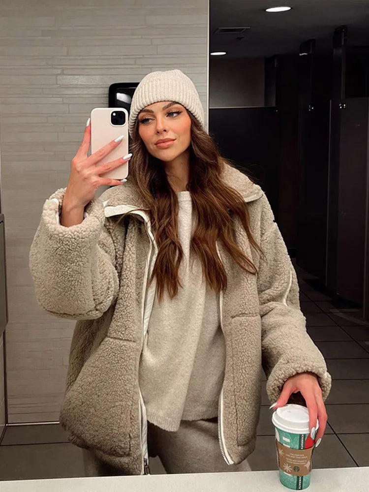 Lunivop Casual Oversized Zipper Lamb Wool Coats Women Thickened Warm Stand Collar Jackets Female Autumn Winter Chic Windproof Outwears