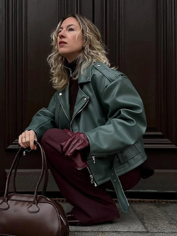 Model Number: Street Leather Zipper Lapel Jackets Women