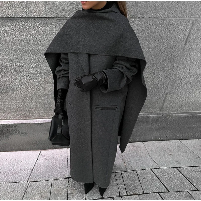 Lunivop Chic Scarf Turn-down Collar Women's Coats Casual Solid Long Sleeved Jackets For Woman Autumn Winter High Street Long Tops