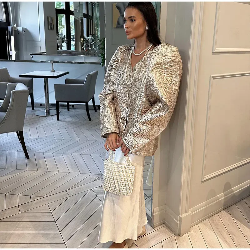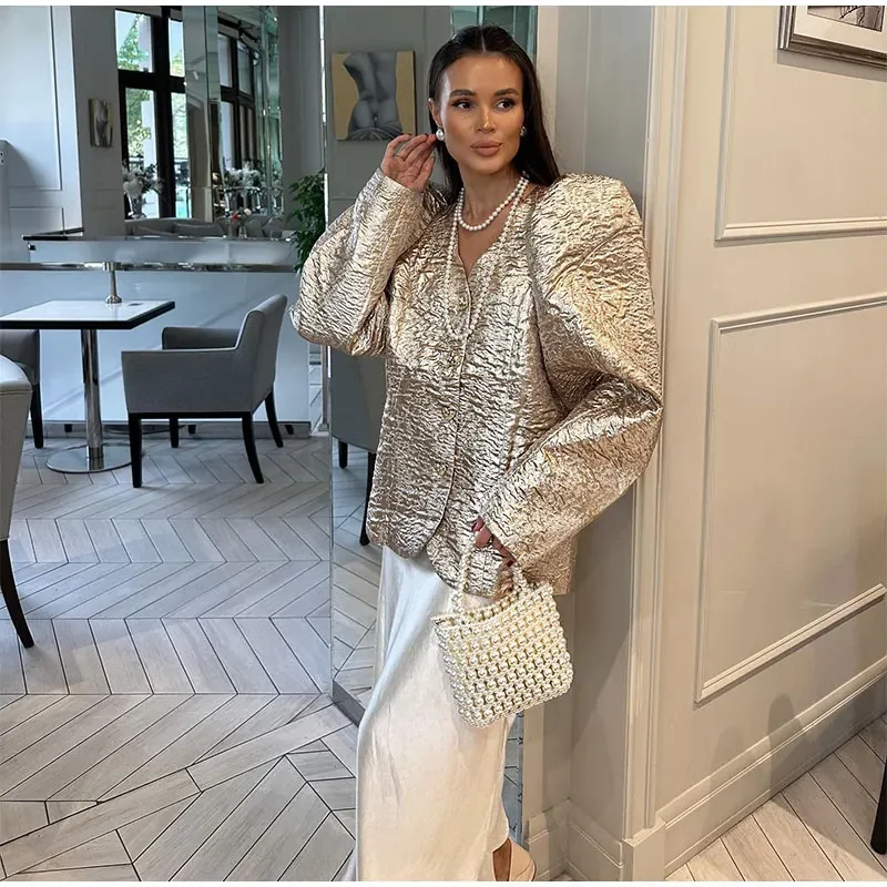 Model Number: chic sparkling pleated puff Sleeve Coat for Women