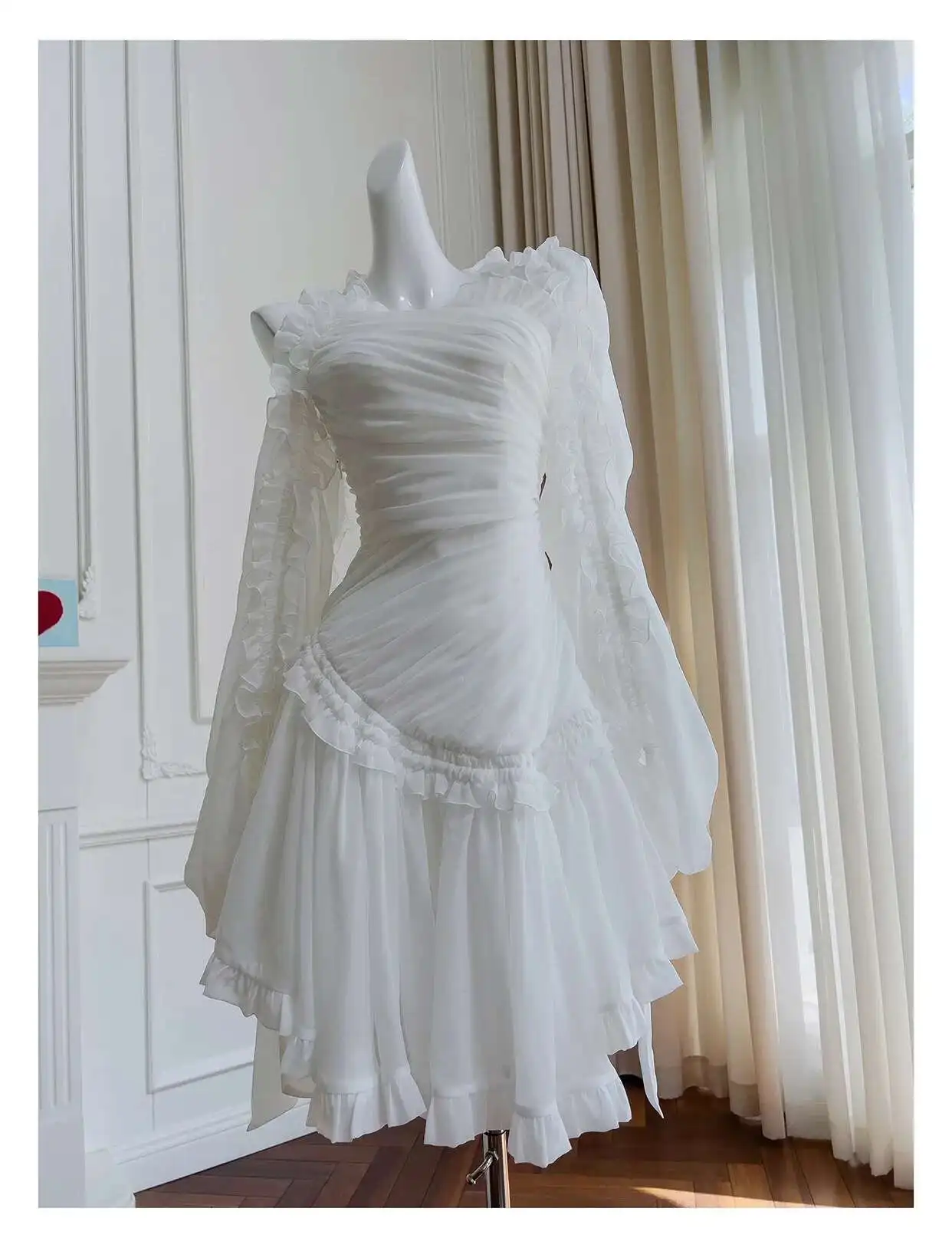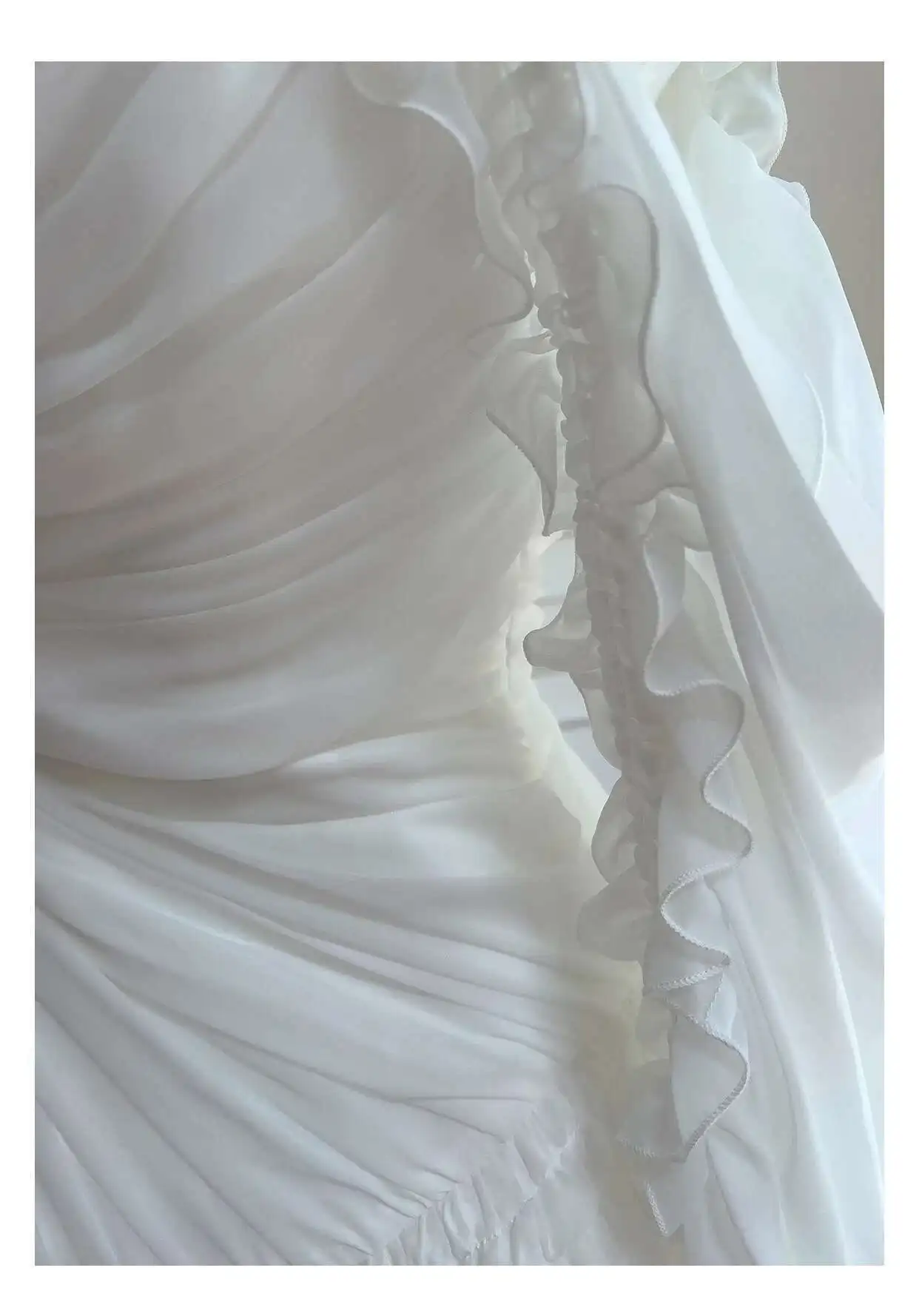 Lunivop Chiffon Ruffled Irregular Ball Dresses For Women Asymmetric Neckline Elegant White Dress Formal Clothing New 2025