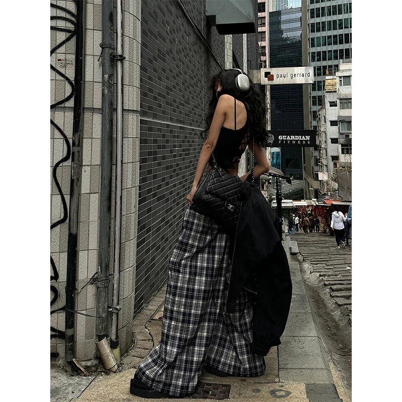 Lunivop Classical Japanese Wide Leg Pants Gothic Elastic Waist Fashion Sweatpants Thin Casual Black Trousers Korean Retro Preppy Style