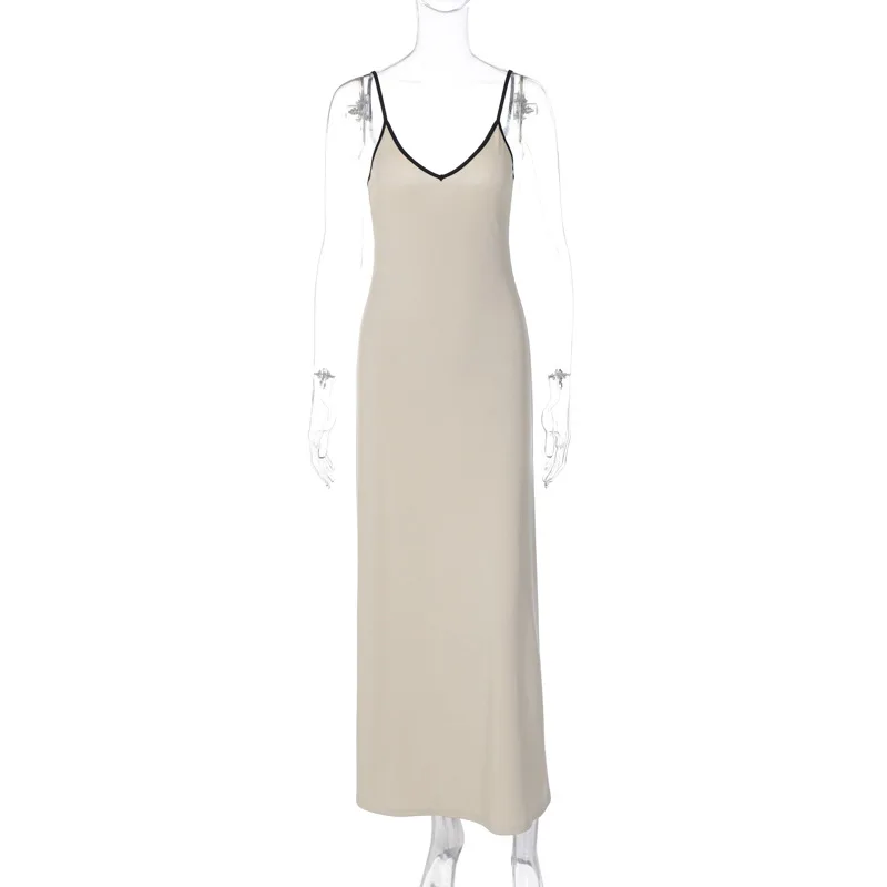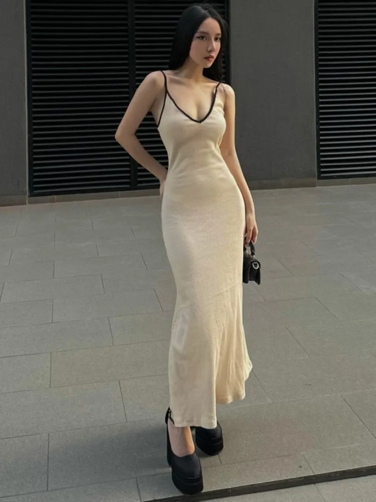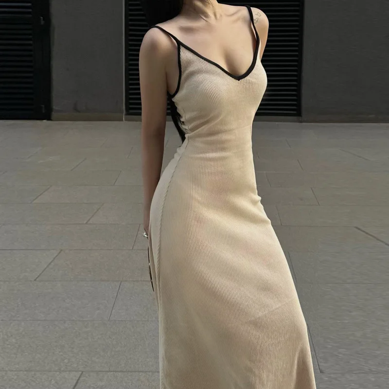 Lunivop Color Block Ribbed Deep V Lace Up Sleeless Maxi Women'S Dresses 2024 Summer Y2K Elegant Party Club Casual Korean Clothing