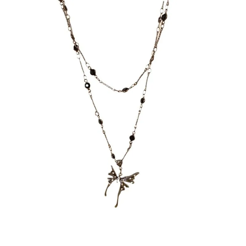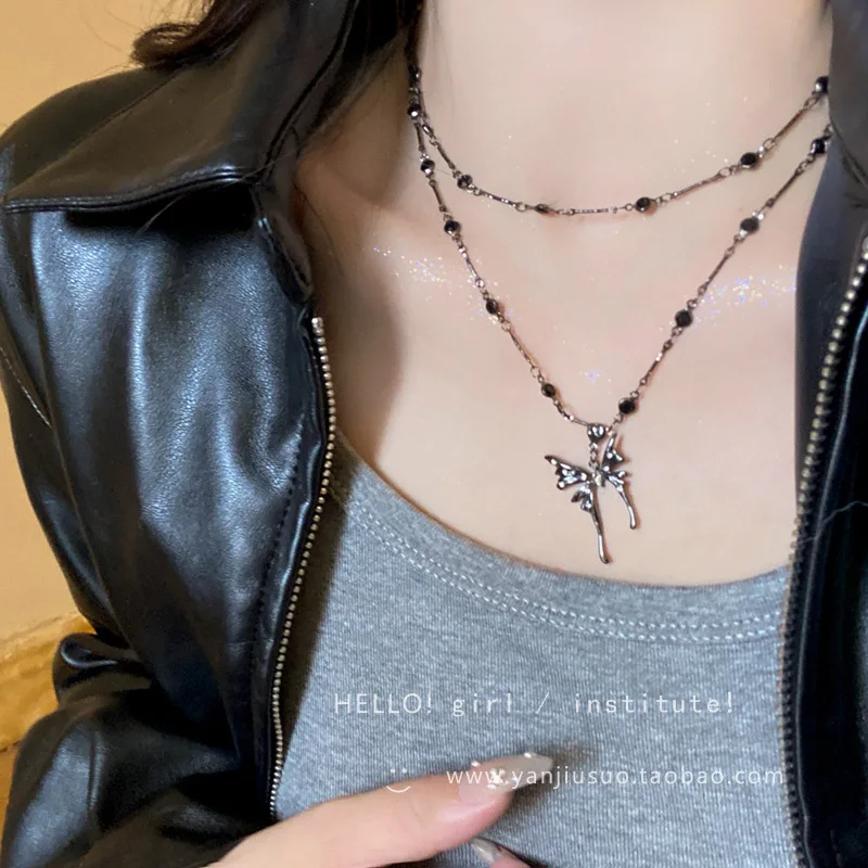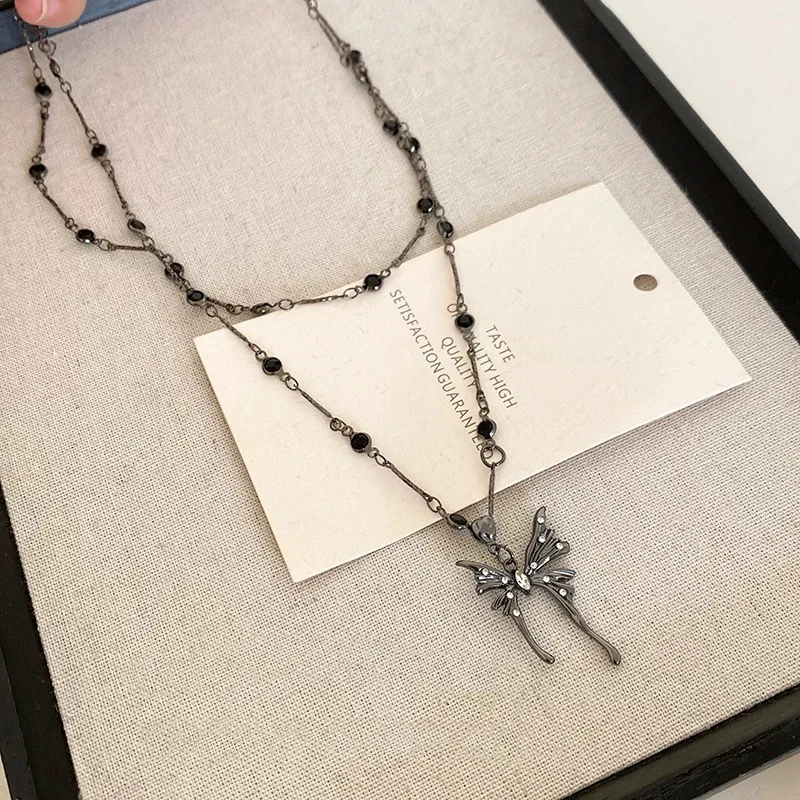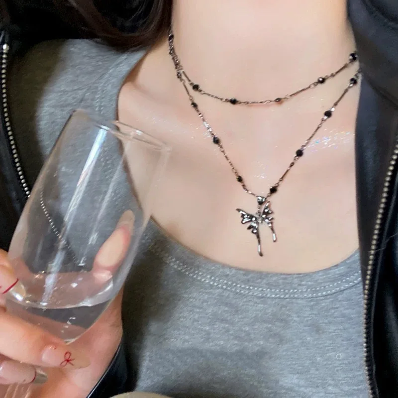 Lunivop Cool Lava Butterfly Pendant Necklace for Women Goth Double Layers Stacking Crystal Choker Y2K Jewelry Summer Accessories