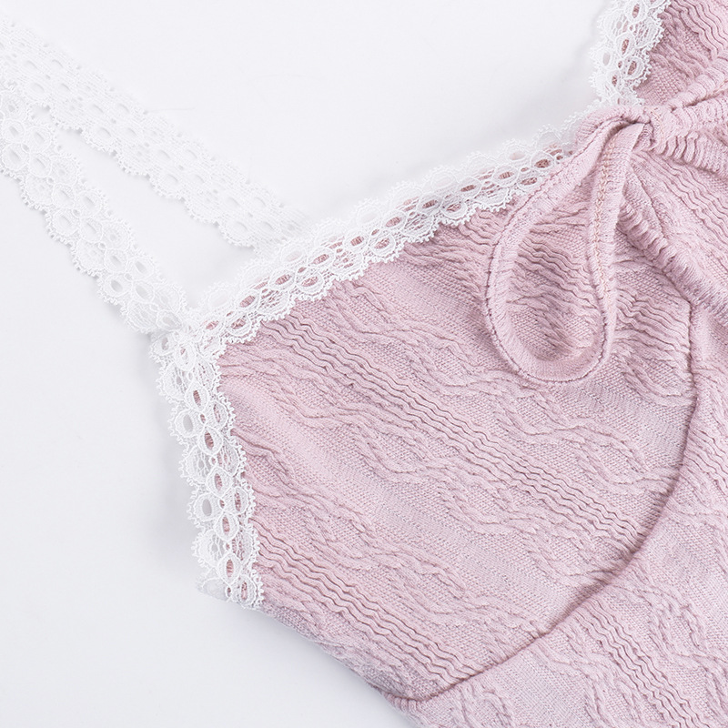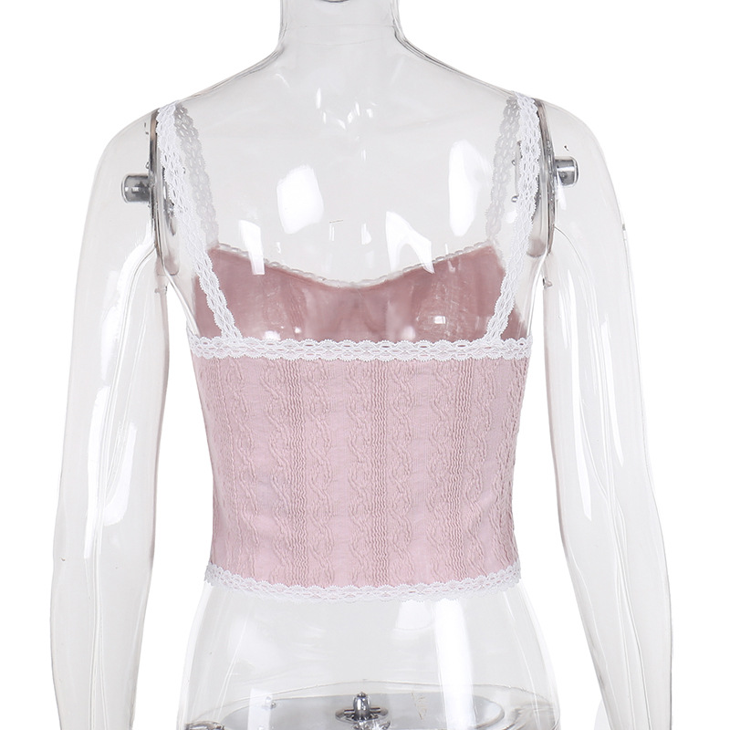 Lunivop Coquette Y2k Crop Tops Pink Cute Sexy Tanks Camis Sleeveless Open Back Lace Trim Tie Up French Style Spring Summer Clothes Women