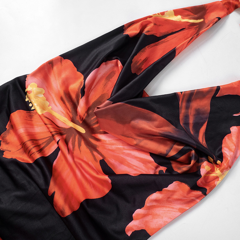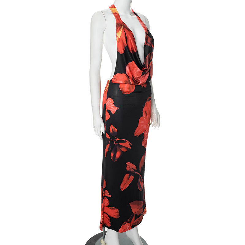 Lunivop Cowl Neck Open Back Halter Long Dress Elegant Sexy Beach Vacation Outfits Flower Print Summer Dresses For Women