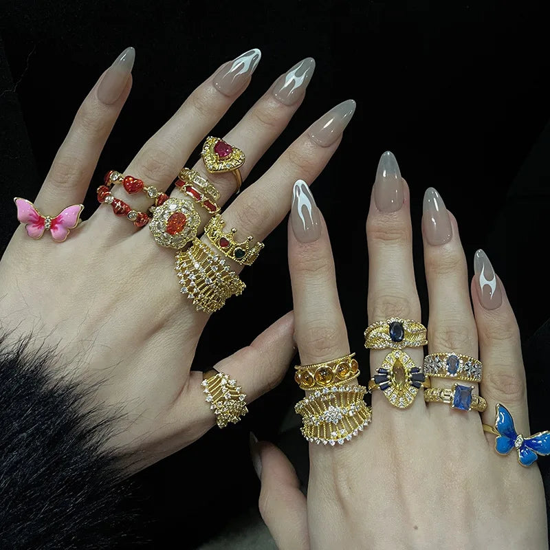 Lunivop Cubic Zirconic Waterdrop Rings For Women Gold Color Stainless Steel Three-Layer Ring Luxury Jewelry Wedding Party Gifts