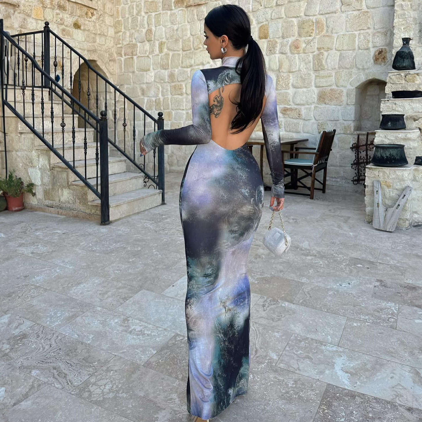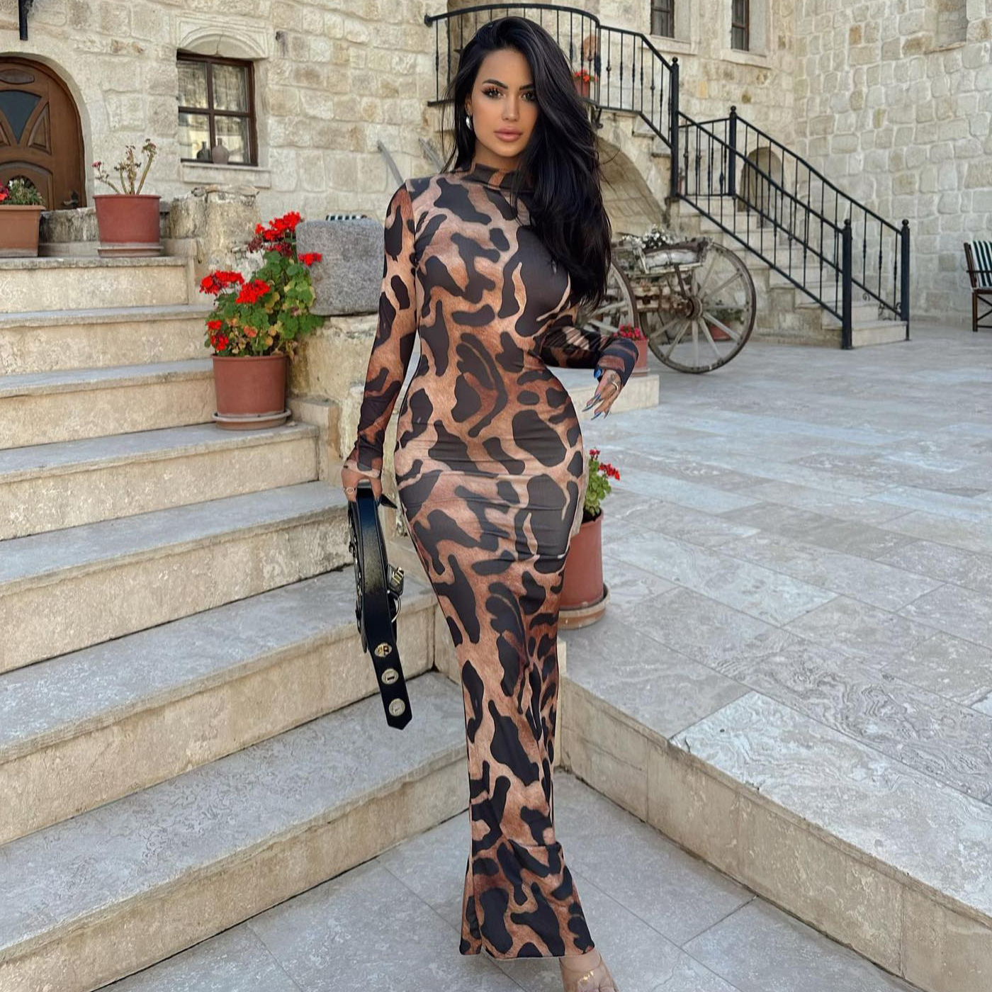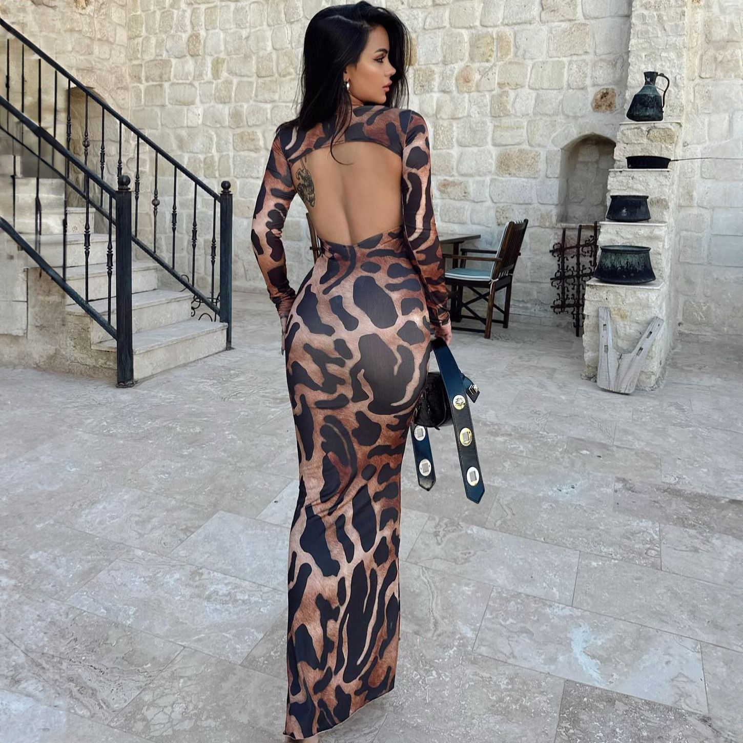 Lunivop Cut Out Backless Long Sleeve Maxi Dresses For Women 2024 Elegant Sexy Winter Party Leopard Print Bodycon Dress
