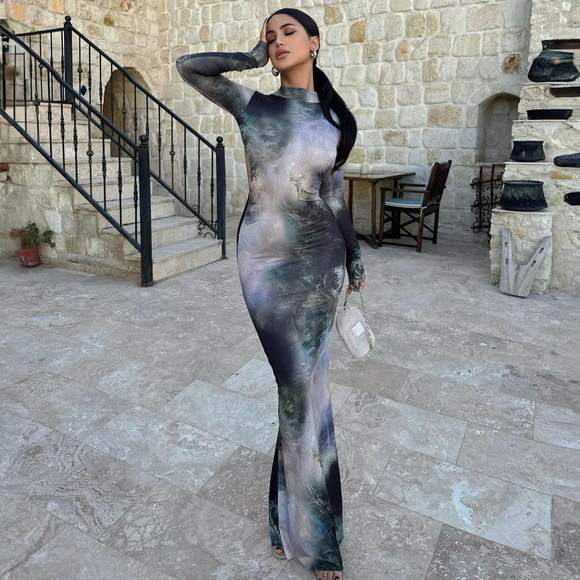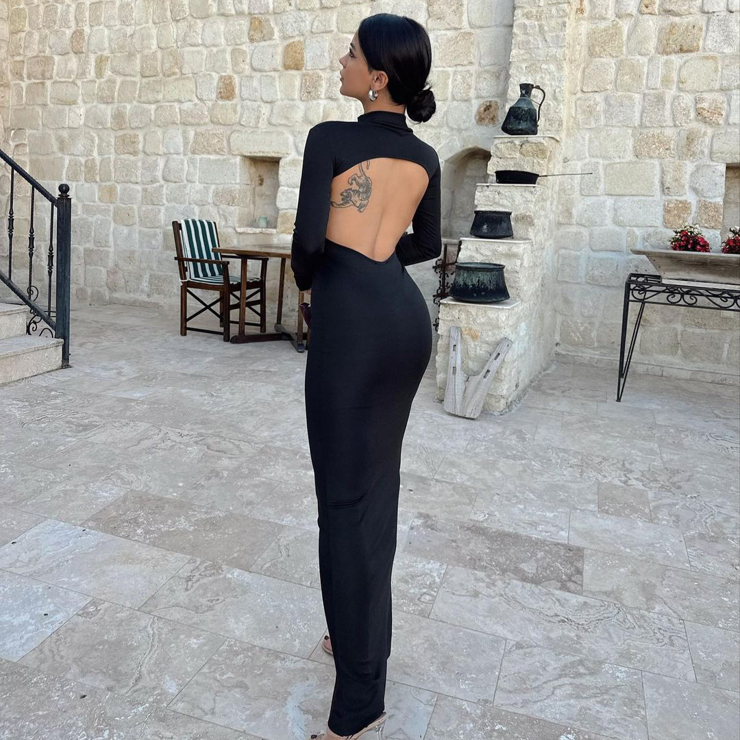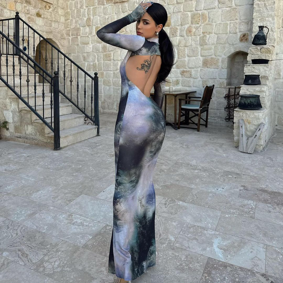 Lunivop Cut Out Backless Long Sleeve Maxi Dresses For Women 2024 Elegant Sexy Winter Party Leopard Print Bodycon Dress