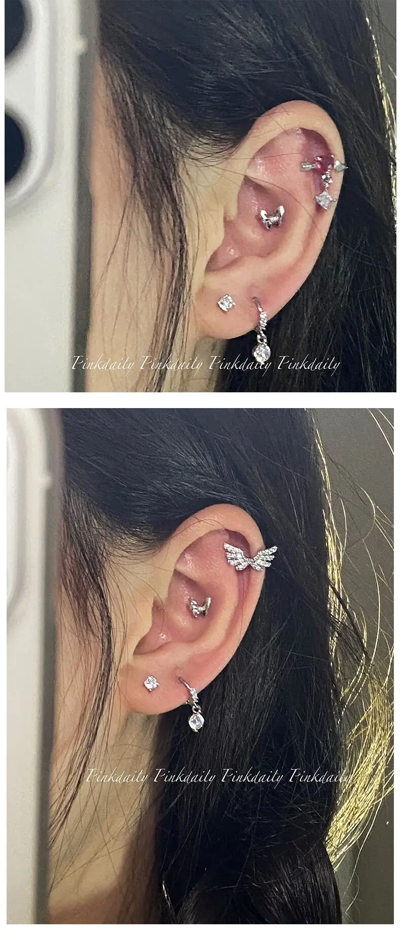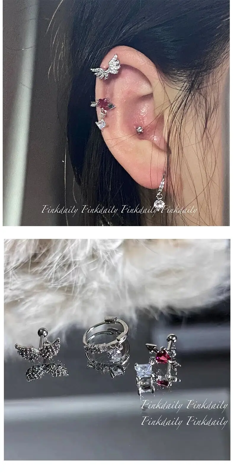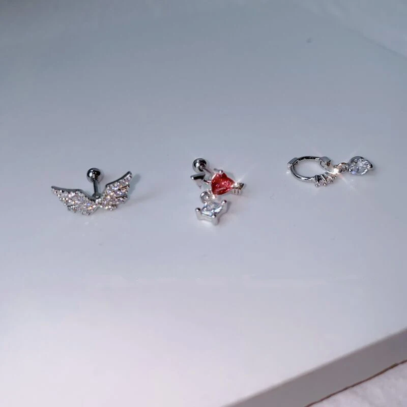 Lunivop Cut Sweet Wing Pink Heart Zirconia Stud Earrings for Women Girls Stainless Steel Helix Cartilage Ear Piercing Earrings Jewelry