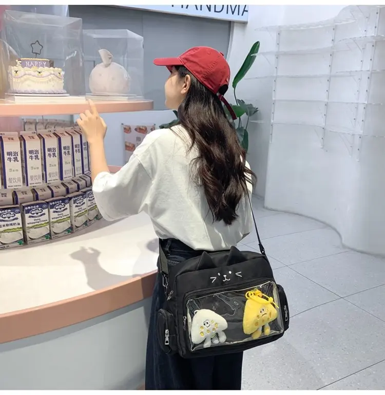 Lunivop Cute Cat Shoulder Bag for Women Nylon Lolita Jk Casual Kawaii Japanese Style Ita Bag Y2k Fashion Students Crossbody Bag