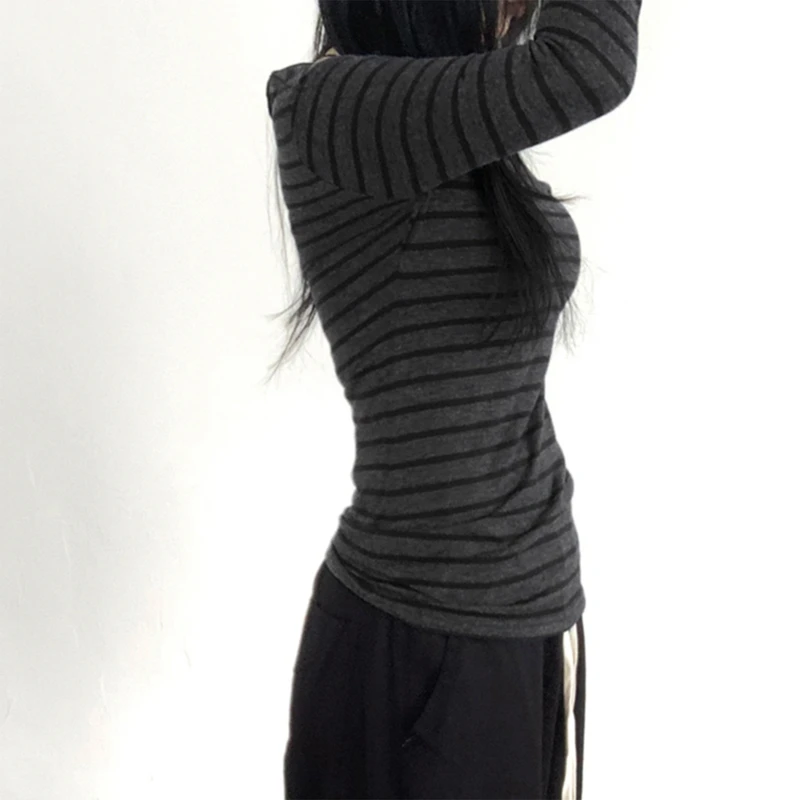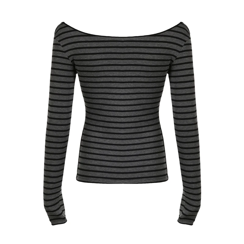 Lunivop Cyber Grunge Y2K T-shirt Women Autumn Spring Korean Vintage Off Shoulder Crop Tops Striped Long Sleeve Slim Fit Tees Streetwear
