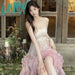 cybergoth dress to impress 2024 Summer New Waist-Tight Chiffon Tie-Dyed Ruffled Fairy Skirt Suspender Skirt Super Fairy Heavy Industry Dress