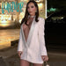 Lunivop Deep V Neck Hot Drill Mini Dress For Women Slim Long Sleeve Sexy Backless Coats Femme Party High Waist Blazers Woman