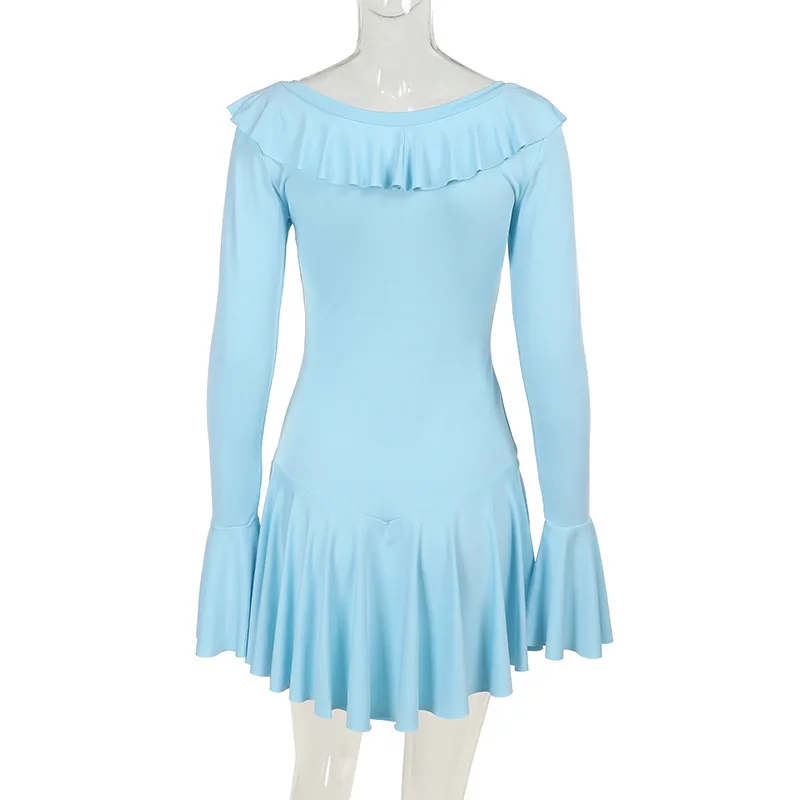 Lunivop Deep V Neck Long Flare Sleeve Autumn Winter Dress Women Solid Ruffles Sexy Mini Dresses Party Night Going Out Club Dresses