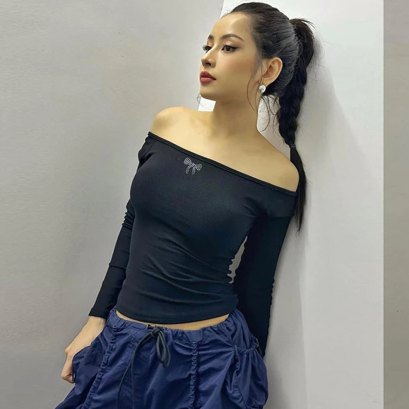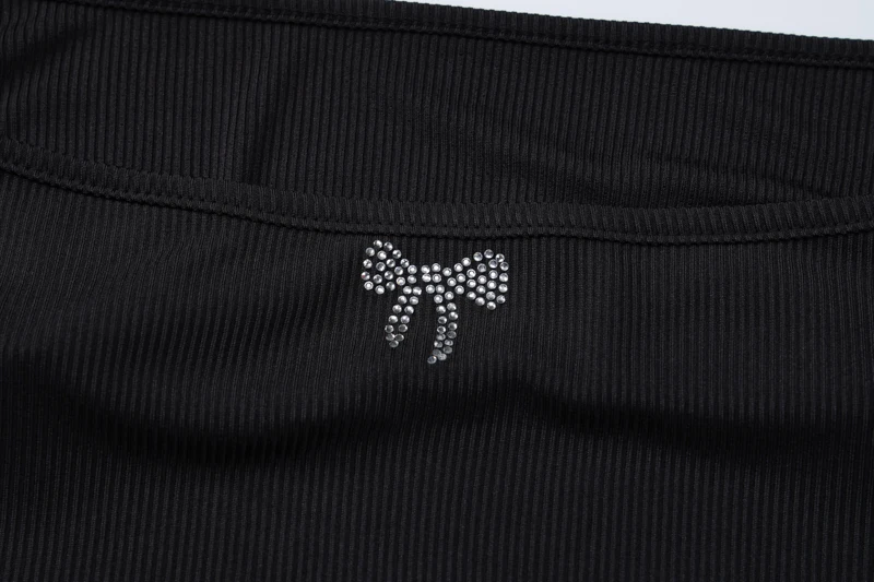 Lunivop Diamond Rhinestone Knit Rib Off The Shoudler Backless Stretch Hollow Out Tank Crop Top T Shirt Casual Streetwear Outfit