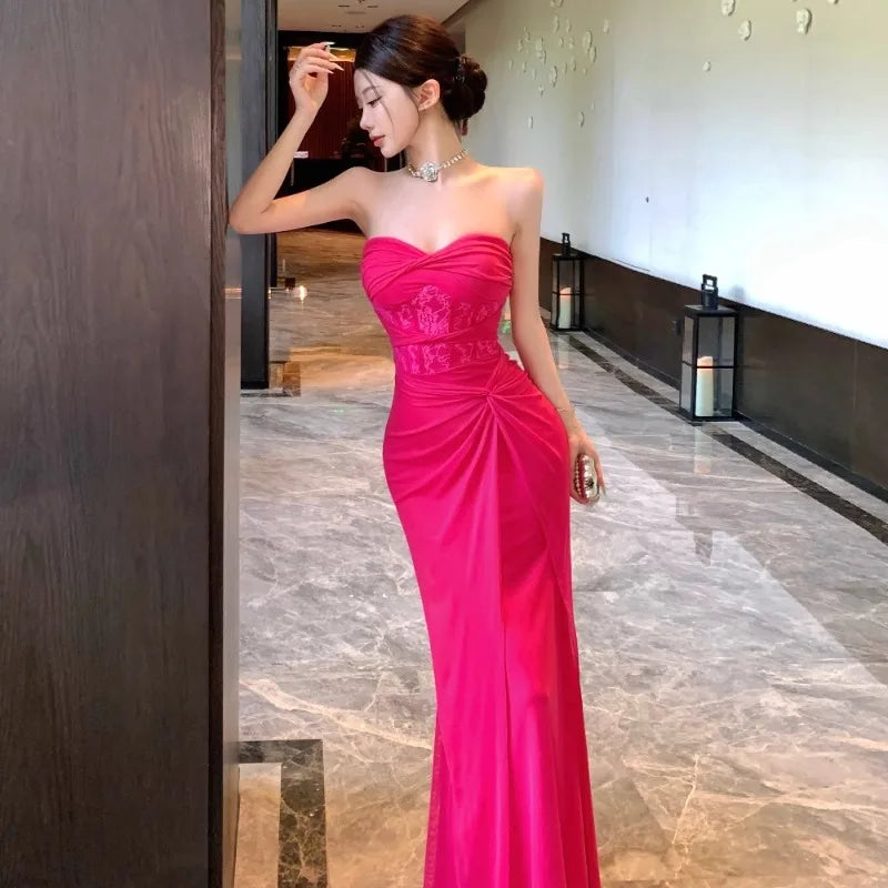 Lunivop Dresses Women Sexy Lace Patchwork Strapless Slim Ruched Backless Temperament Cocktail Dress Party Female Fashion