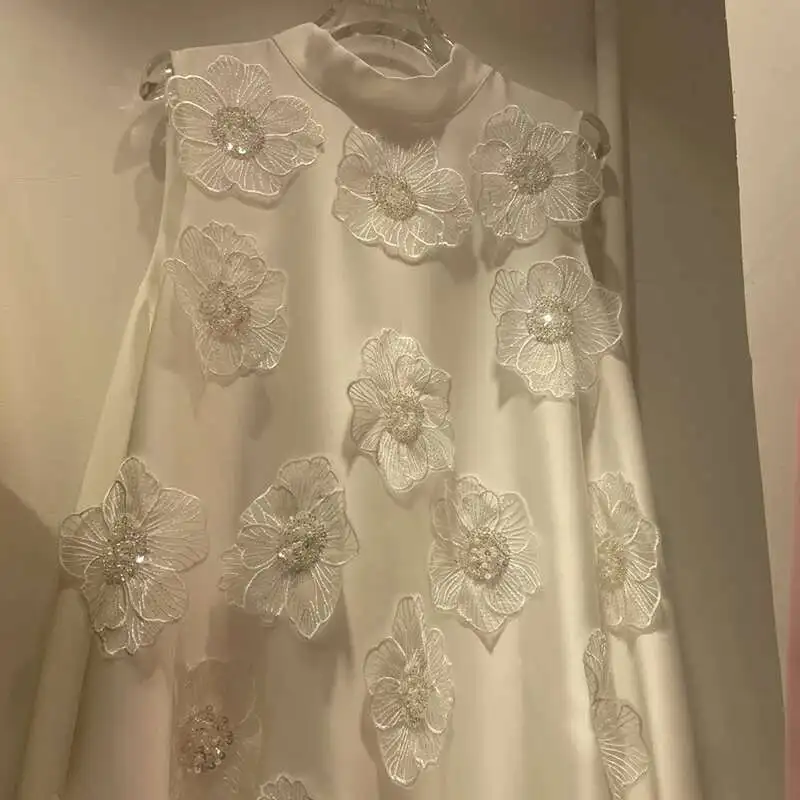 Lunivop Elegant Beautiful Women Dress 3D Floral Embroidered Flares Design Loose Sleeveless Summer Dresses