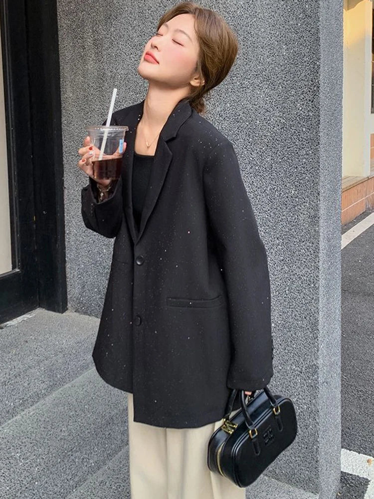 Lunivop Elegant Black Blazer Women Fashion Sweet Long Sleeve Design Suit Coat Korean Casual Chic Female Fall Winter Sweet Jacket