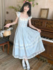 Lunivop Elegant Blue Long Dress Women Sweet Lace Patchwork Vintage Dress High Quality Casual Flying Sleeve Bow Lady Retro Vestidos