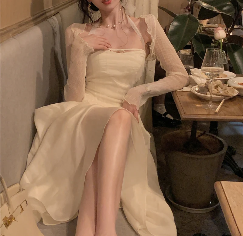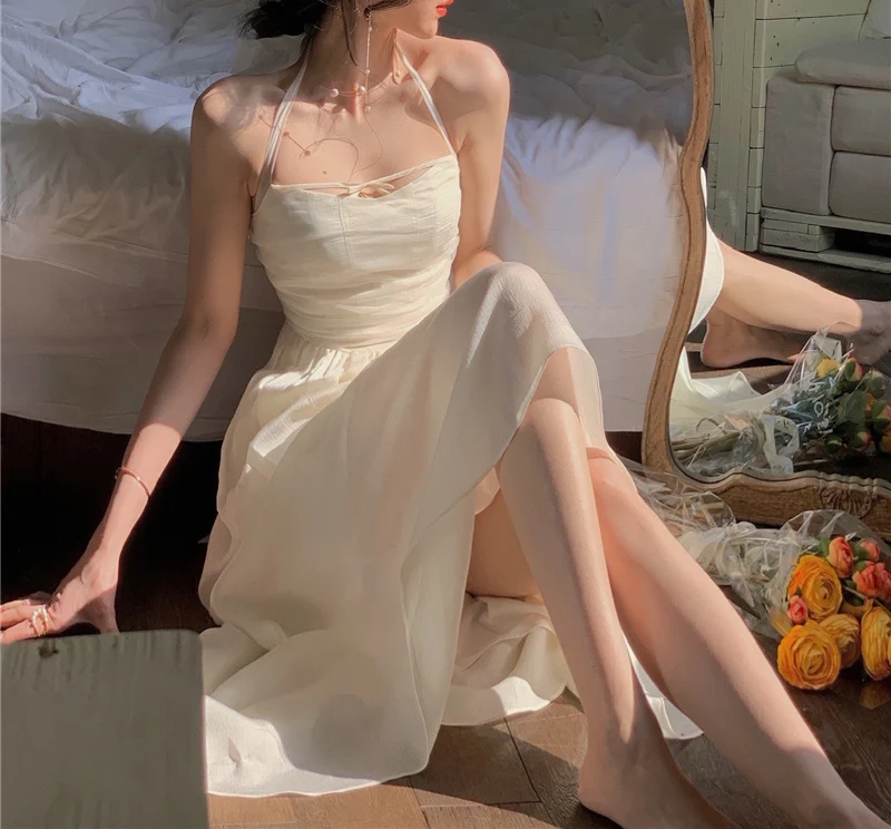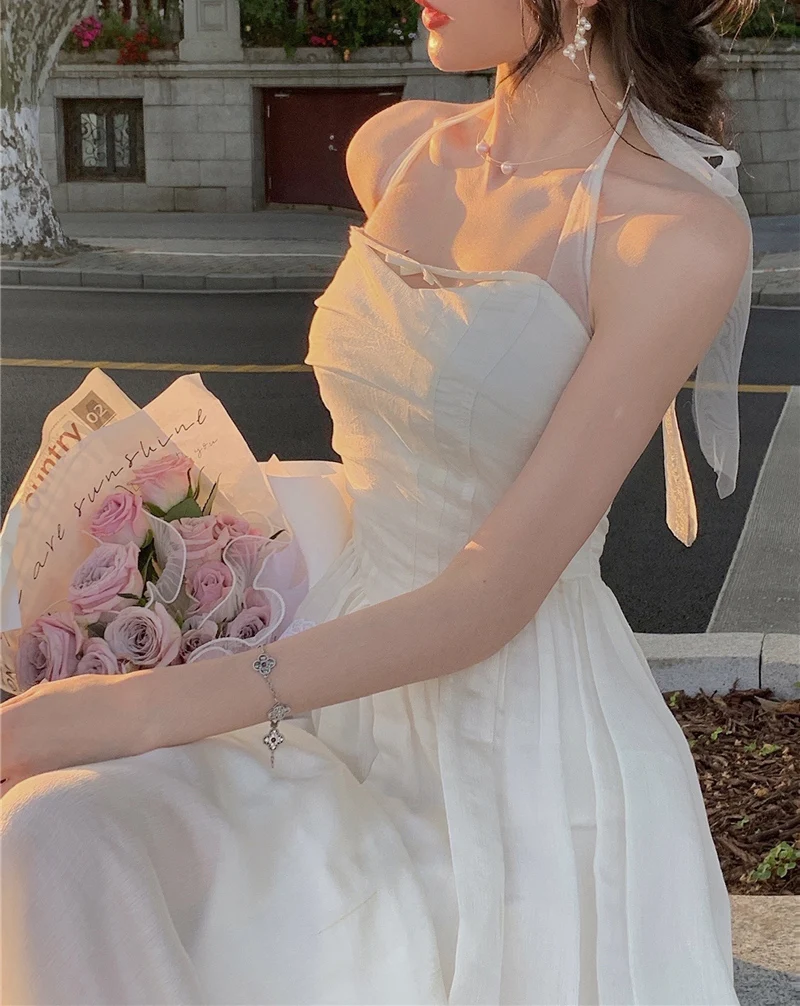 Lunivop Elegant Fashion Halter Fairy Midi Dresses Summer Woman Korean Solid A Line Birthday Evering Party Vestidos Female Clothes