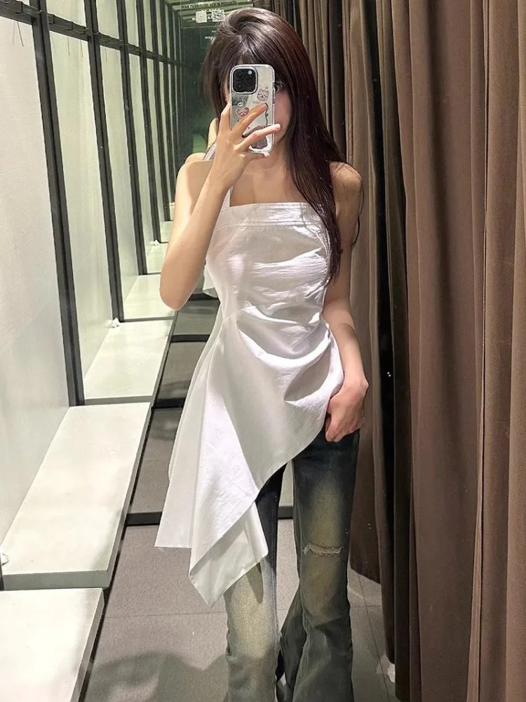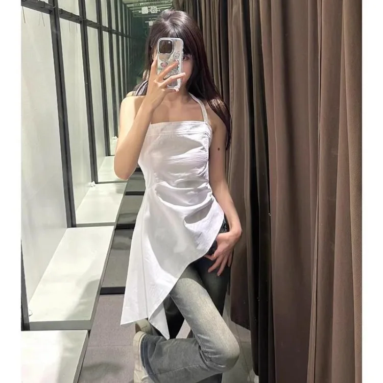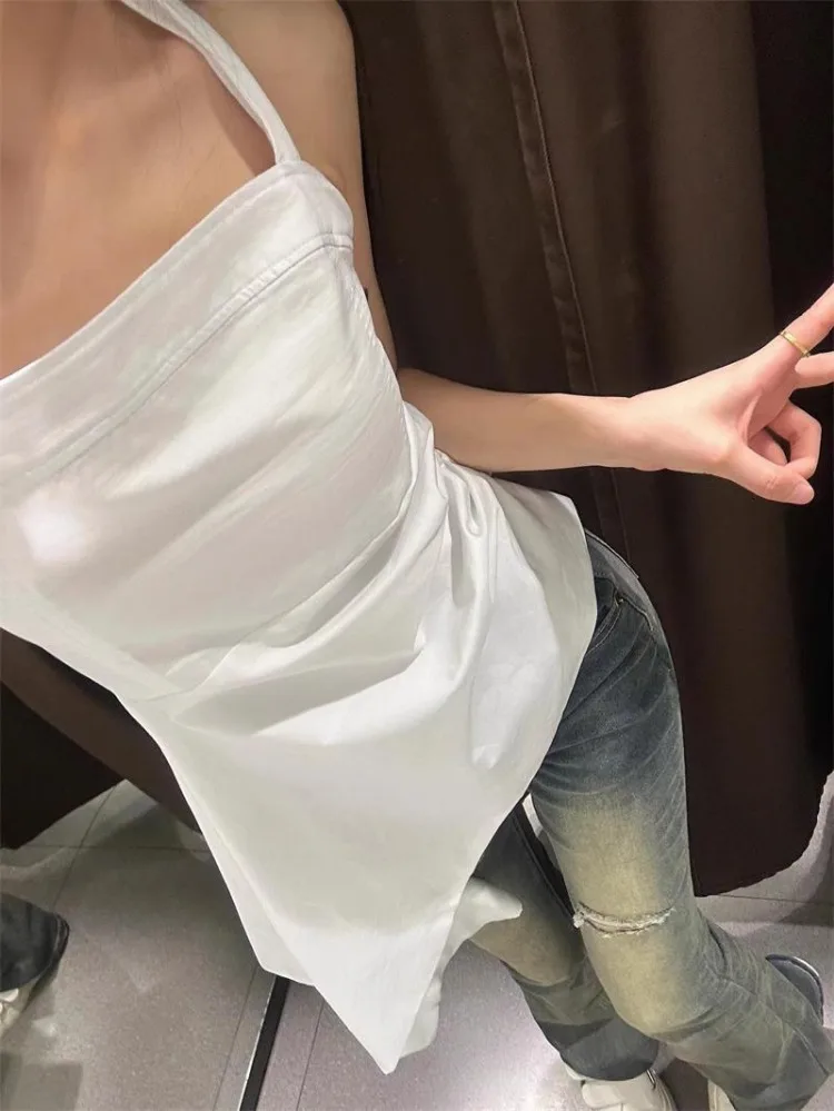 Lunivop Elegant Fashion White Halter Camisole Vest for Women 2025 Summer New All-match Tank Top Y2k Slim Fit Ruched Tops Mujer