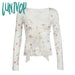 Lunivop Elegant Floral Printed Crop Top Square-Neck Lace-Trim Long Sleeve Ruffled Pleated Top Vintage Women Slim-Fit Homecoming Outfits