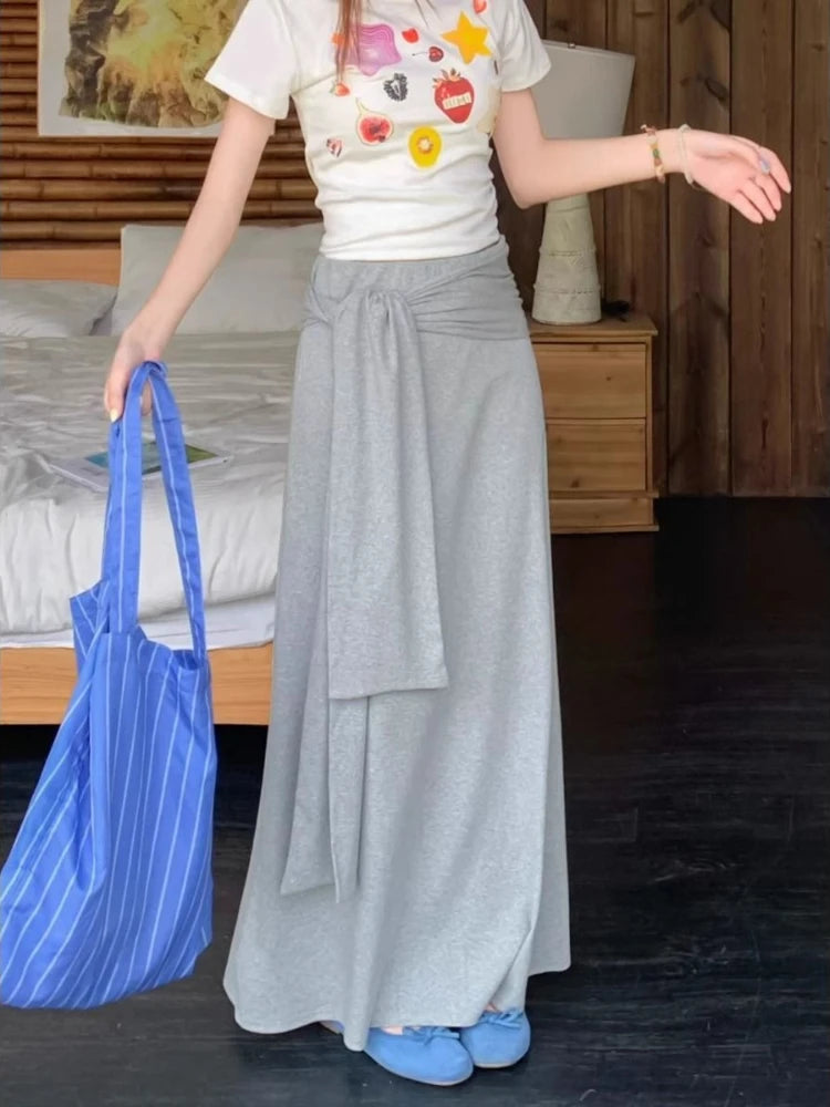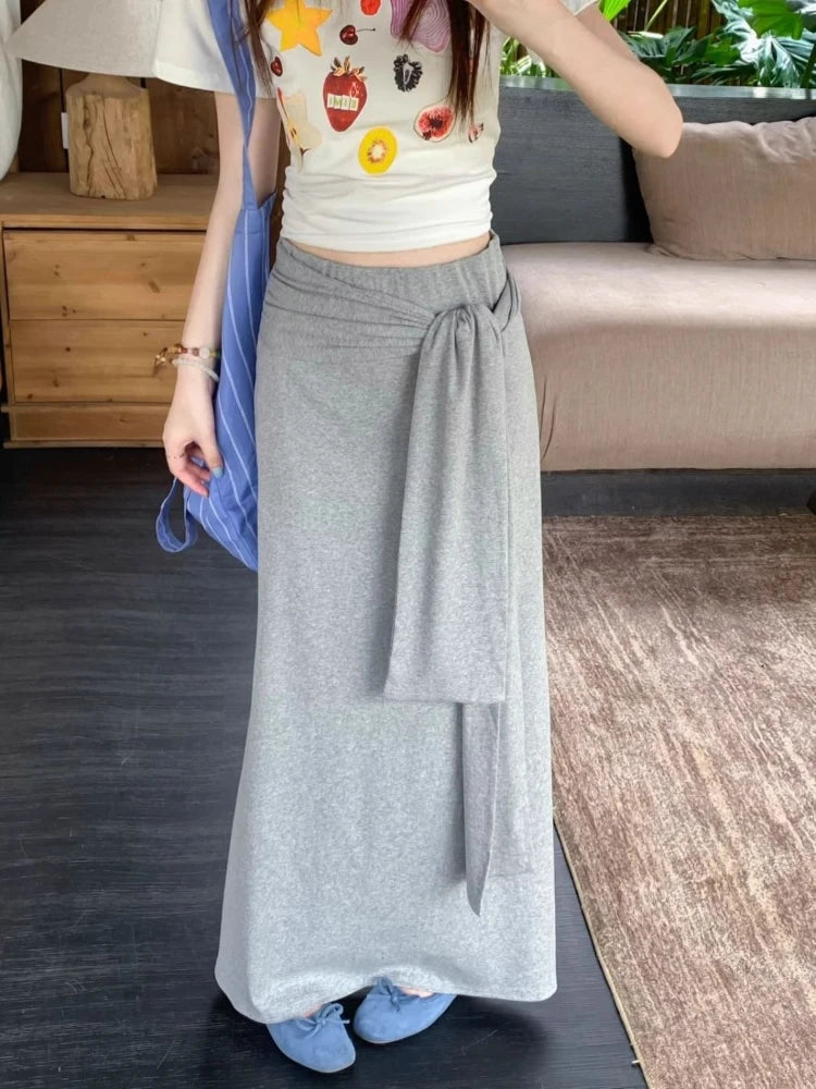 Lunivop Elegant Gray Long Skirt Women Korean Style High Waist Sexy Midi Skirt Autumn Winter Lace Up Fashion Solid A-line Skirts