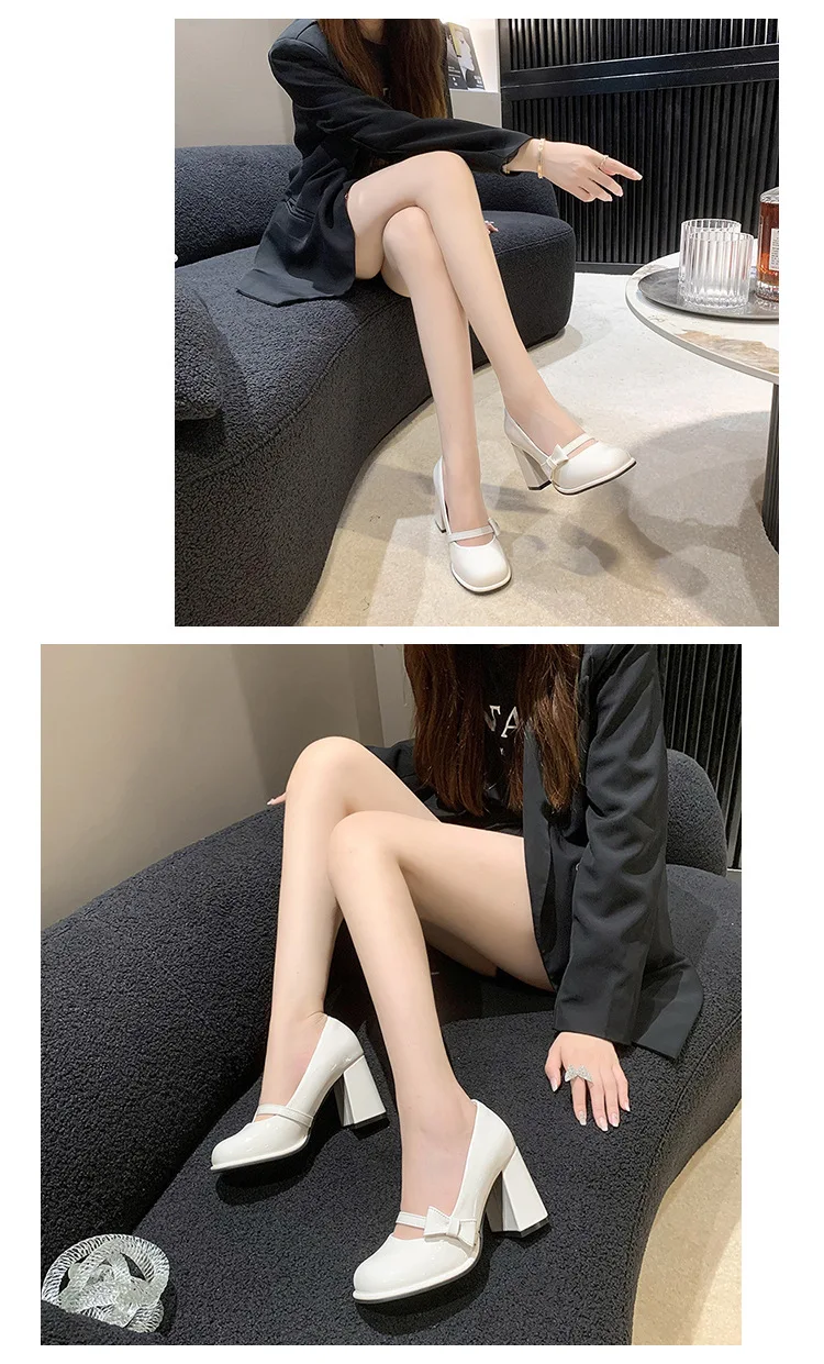 Lunivop Elegant Heel Shoes Ladies 8cm High Heel Bowknot Solid Mary Jane Zapatos Adult Dress Pink White Black Cosplay Footwear