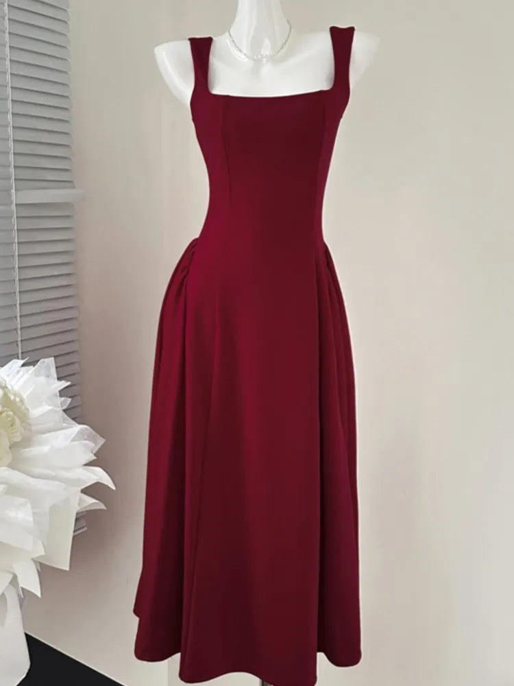 Lunivop Elegant Korean Fashion Summer Evening Party Red U-neck Sling Dress Lady Casual High Waist Sleeveless Strap Mini Dress for Women