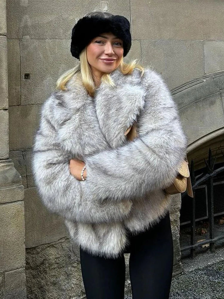 Lunivop Elegant Lapel Faux Fox Fur Short Coat Women Casual Loose Long Sleeve Jackets Female Winter Thickened Warm High Street Outwears
