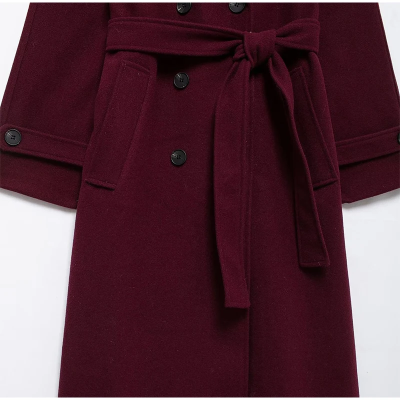 Lunivop Elegant Lapel Long Coats With Belt Women Casual Solid Double Breasted Coat Female Autumn Winter Chic High Street Outwear Tops