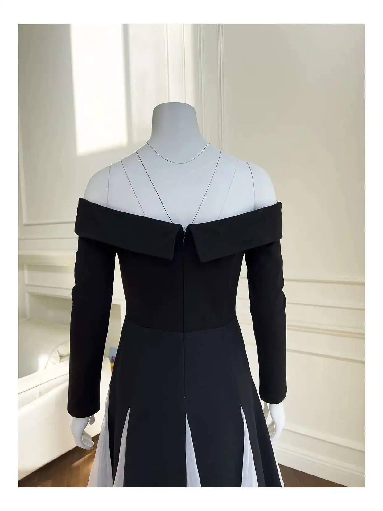 Lunivop Elegant Luxury Evening Dress Slash Neck Long Sleeve Slim Contrast Color Patry Dresses For Women New Spring