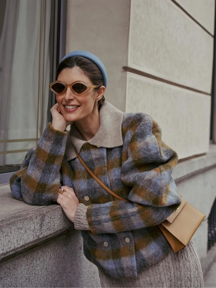 Lunivop Elegant Plaid Puff Sleeve Woolen Coats Women Retro Chic O-neck Double Breasted Jackets Lady Autumn Casual Daily Outwear Tops
