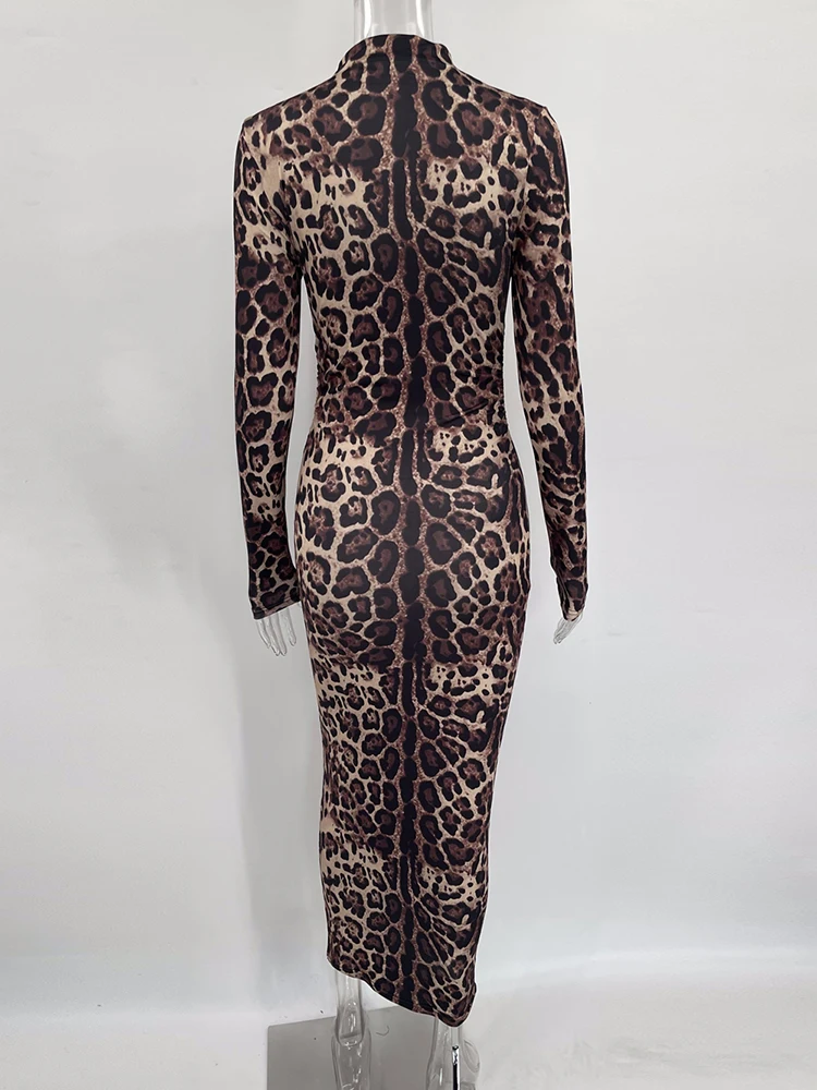 Lunivop Elegant Sexy Leopard Print Maxi Dress For Women Long Sleeve Slim Fit Birthday Gown Dress Fashion Female Streetwear Cloth